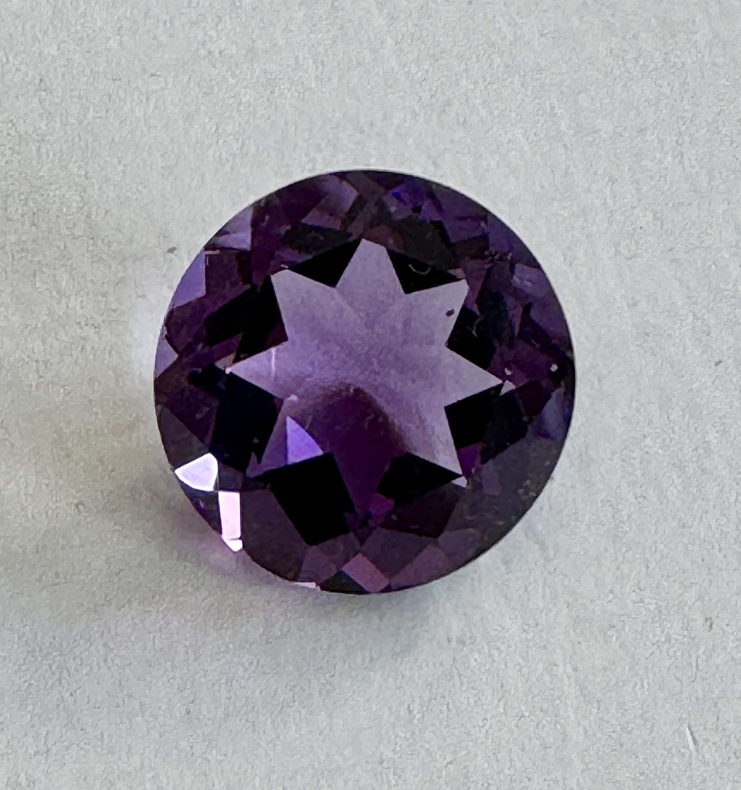 1 Amethyst ca. 20 mm in rund geschliffen in Top Qualität, mit einem Gewicht von 26,77 ct. Dieser Stein besticht durch seinen Super Schliff und Designe!