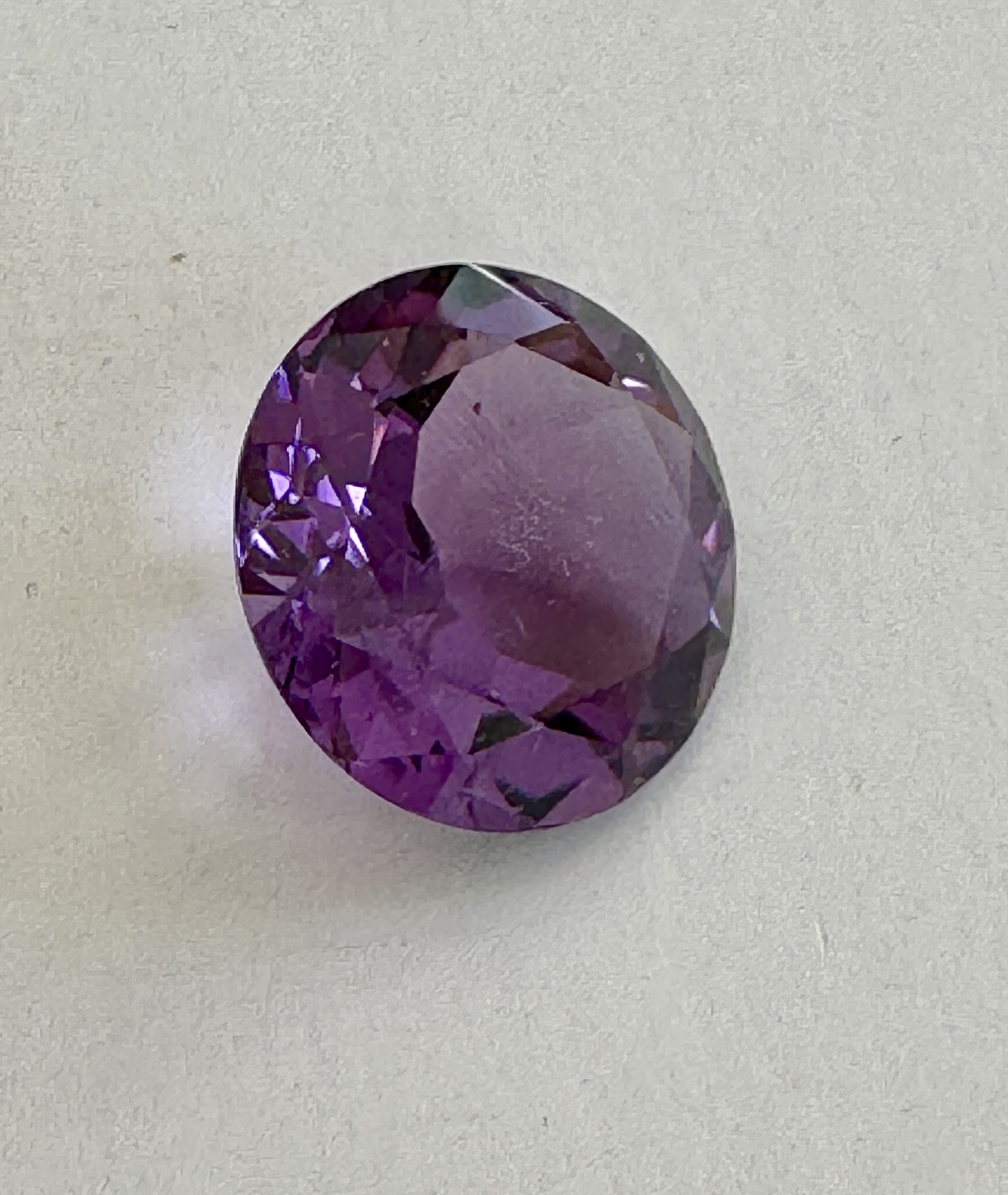 1 Amethyst ca. 20 mm in rund geschliffen in schöner Qualität, mit einem Gewicht von 21,76ct. Dieser Stein besticht durch seinen Super Schliff und Designe!