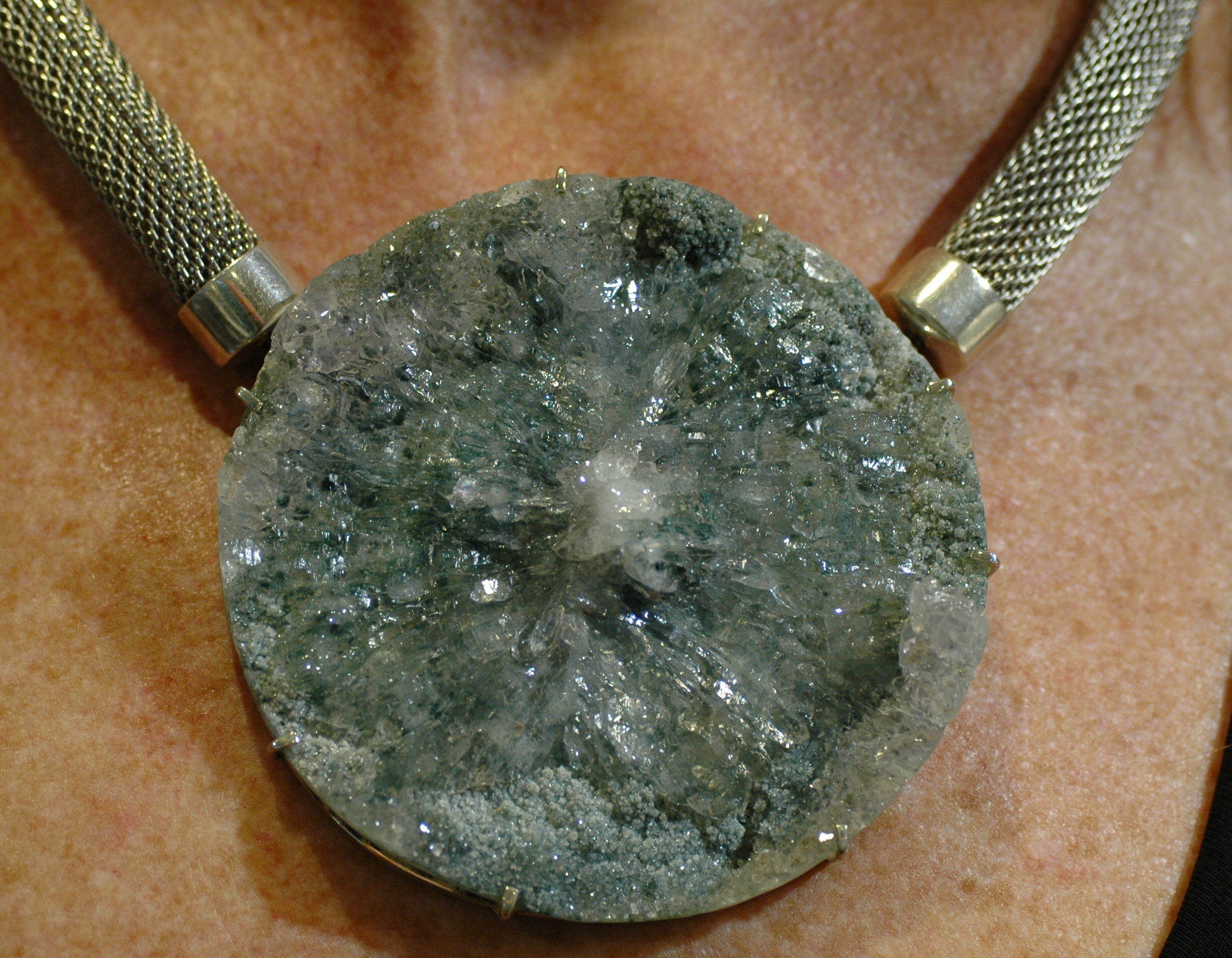 Grandios gelungener Amethyst-Kristall Anhänger, in Silber eingefasst und mit einer praktischer Wechselschließe versehen.