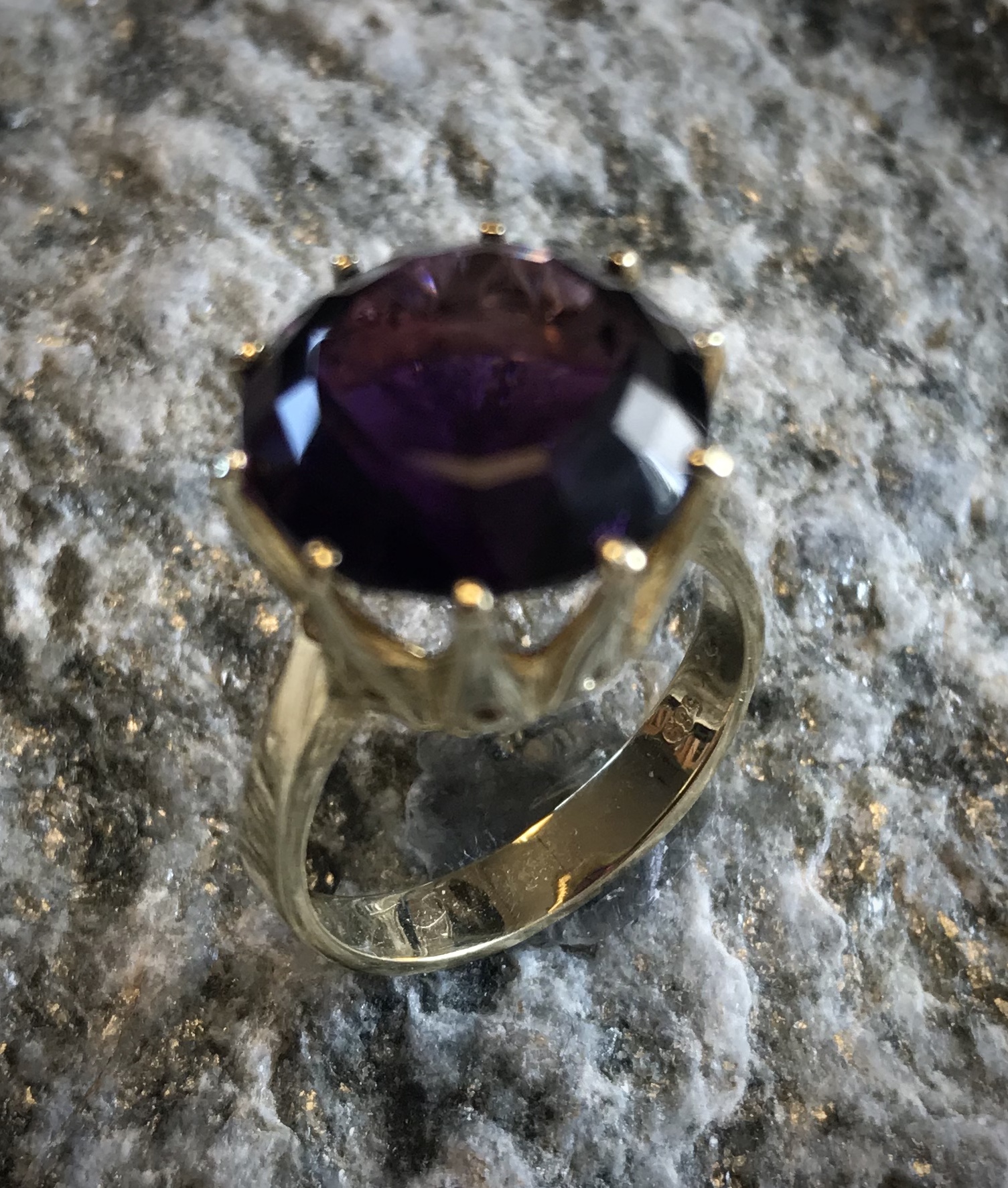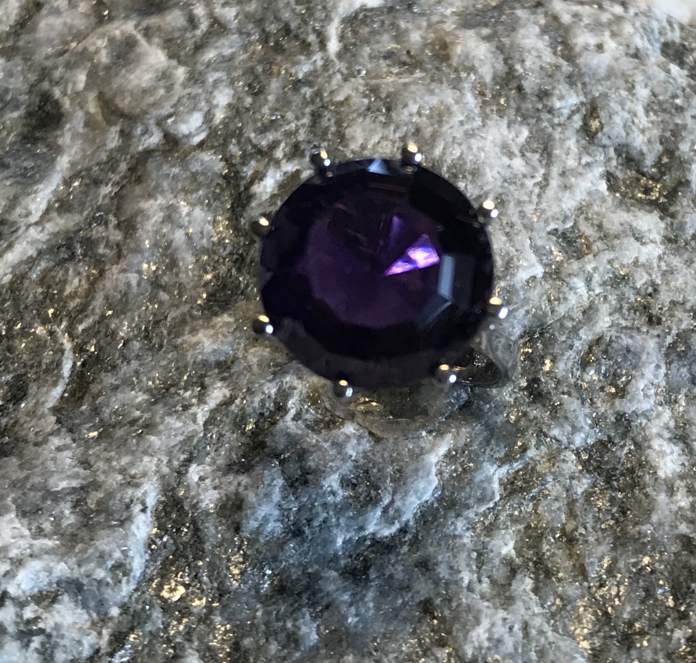 Zeitlos schöner Amethyst Ring in 585 WG mit einem 14 mm runden facettierten Stein.