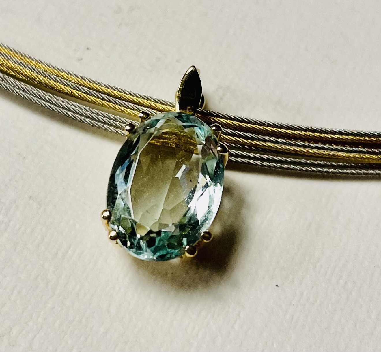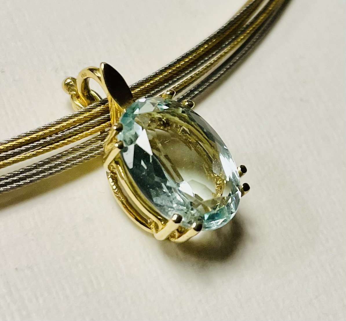 Exklusiv präsentiert sich dieser ovale 14 x 10 mm Aquamarin Anhänger mit seinem prächtigen Glanz und der formvollendeten