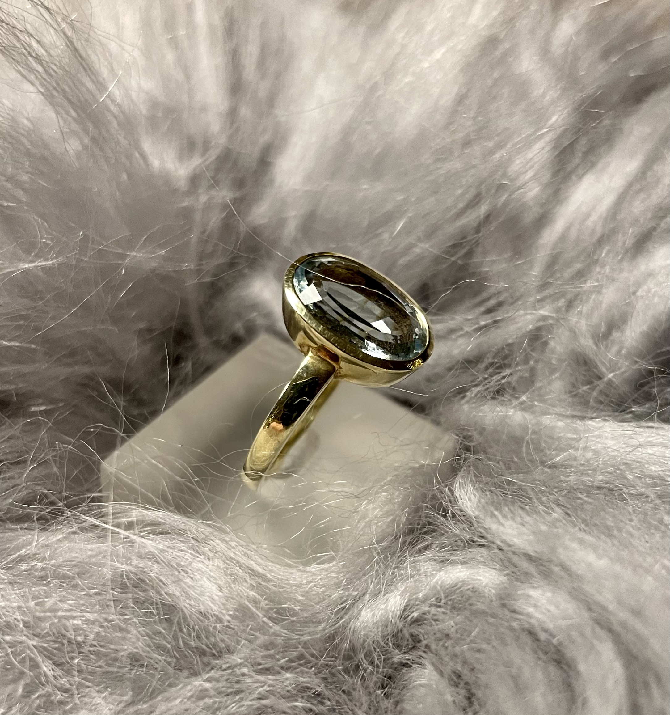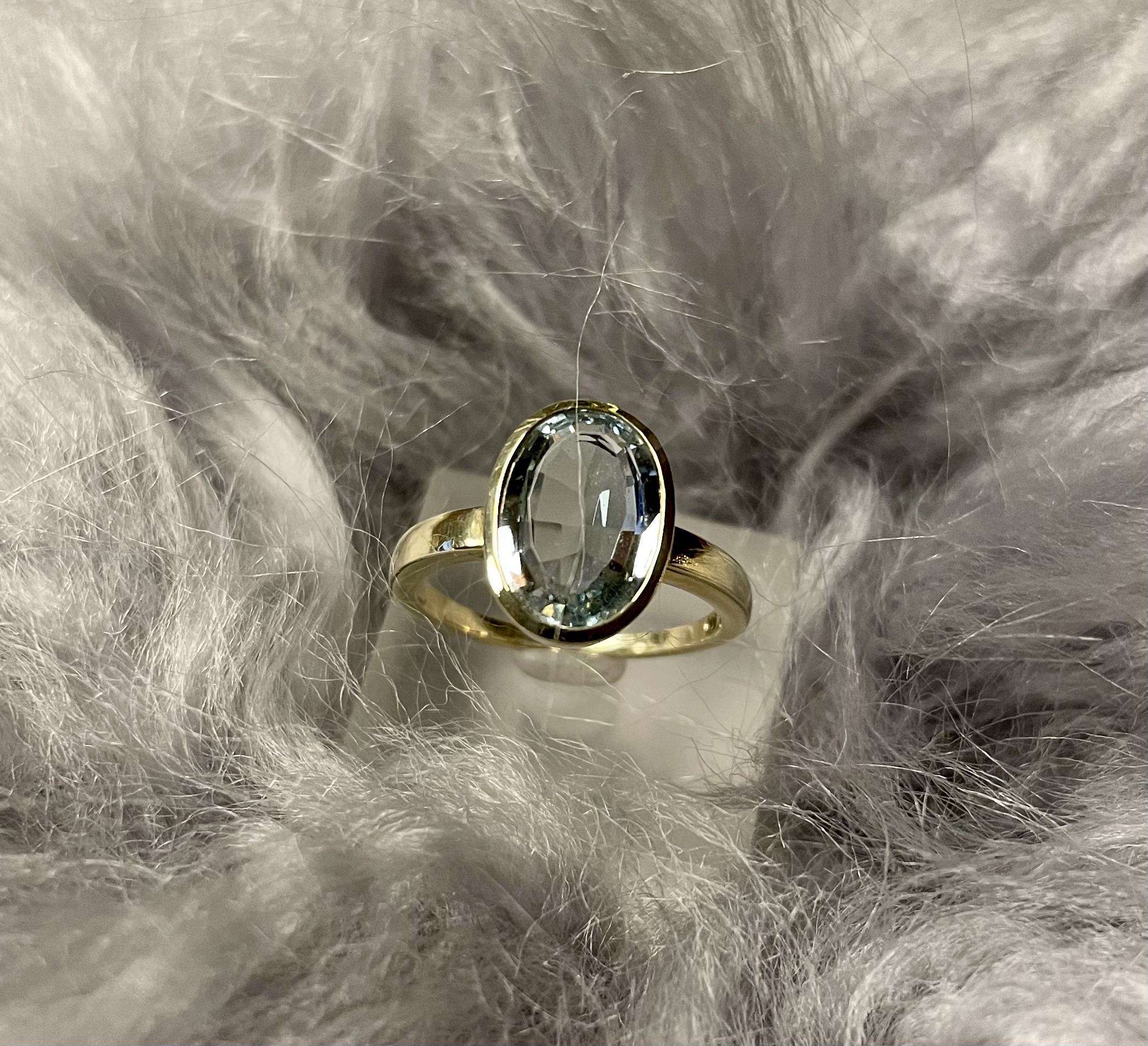 Ein traumhafter Aquamarin kombiniert mit 585 Gelbgold, harmoniert ausnehmend gut an Ihrer Hand. Der leuchtende blaue Edelstein mit einem Gewicht von ca. 2,98 ct wurde facettiert, so dass sein natürlicher Glanz um ein Vielfaches verstärkt wird.