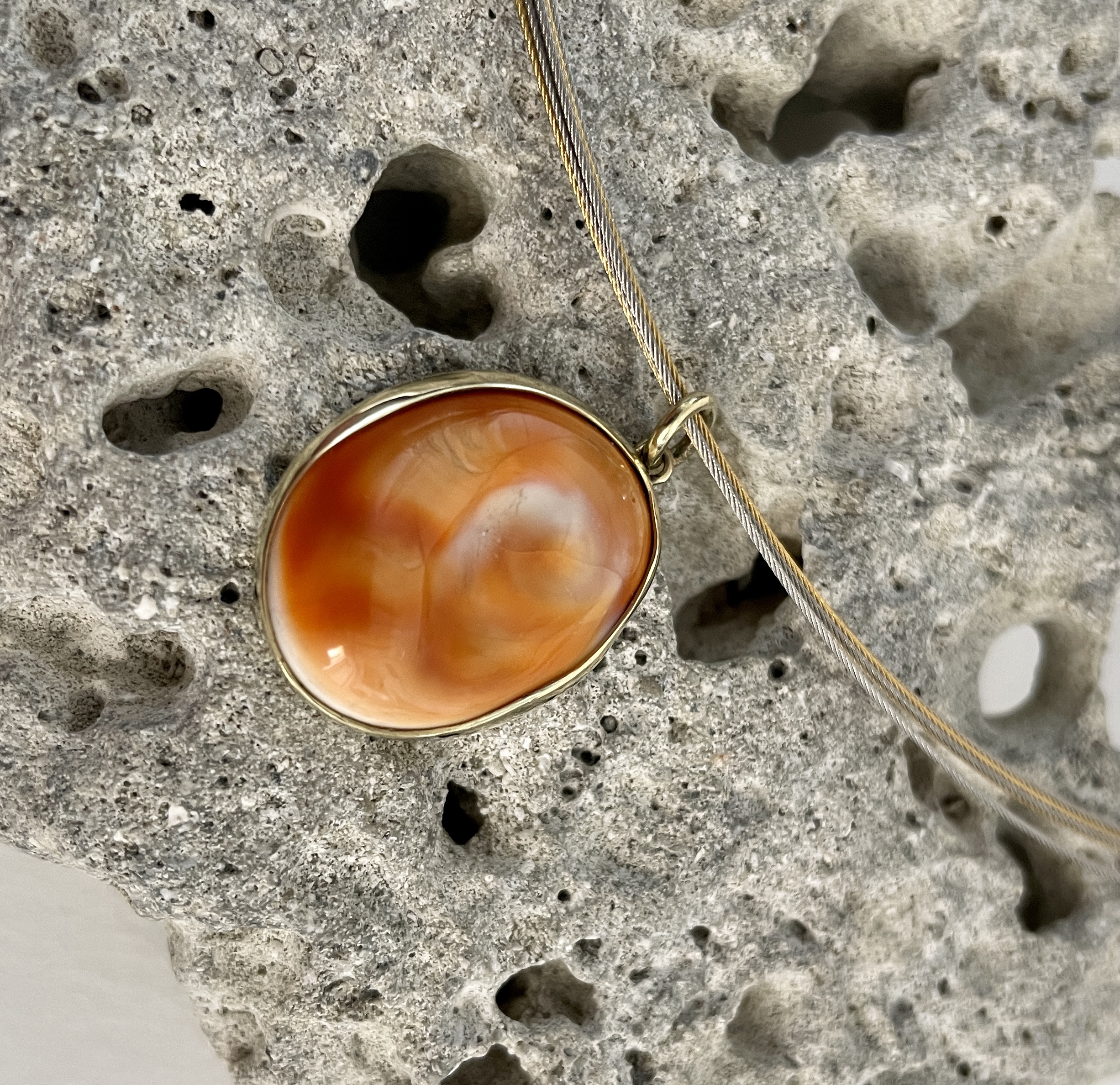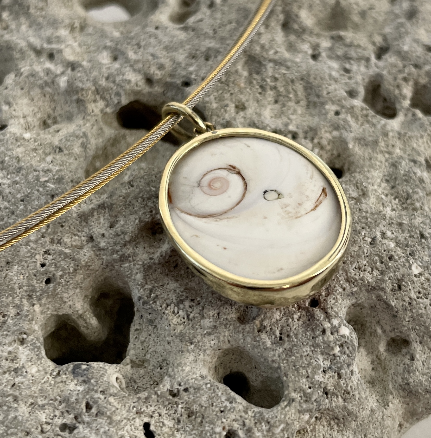 In liebevoller Handarbeit gefertigter Anhänger mit dem Auge der Santa Lucia, in einer Fassung aus 585 GG. Doch das "Auge der Heiligen Lucia" ist mehr als ein Schmuckstück, es hat, so will es der Volksglauben, Heilwirkungen. Dieser Anhänger hat eine Größe von ca. 23 x 19 mm und ein Gewicht von 4,28 g.