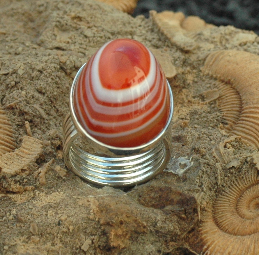 Sehr ausgefallener, handgefertigter Augenachat Silberring mit einer Ringweite von 57.