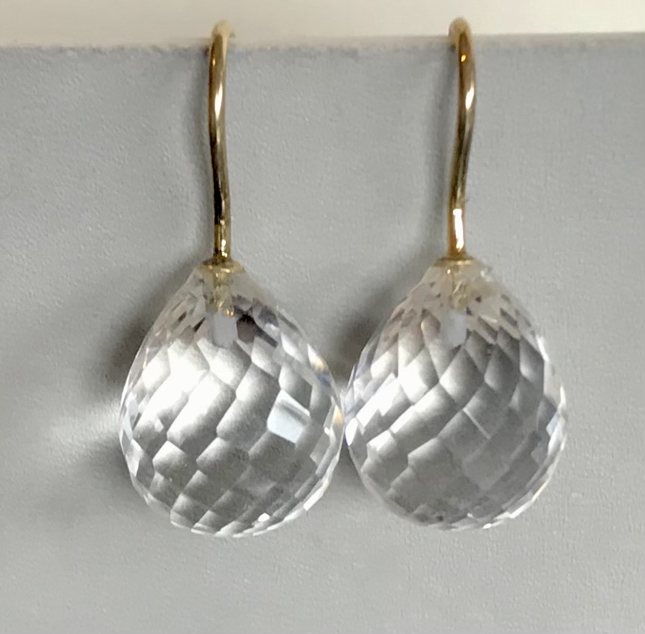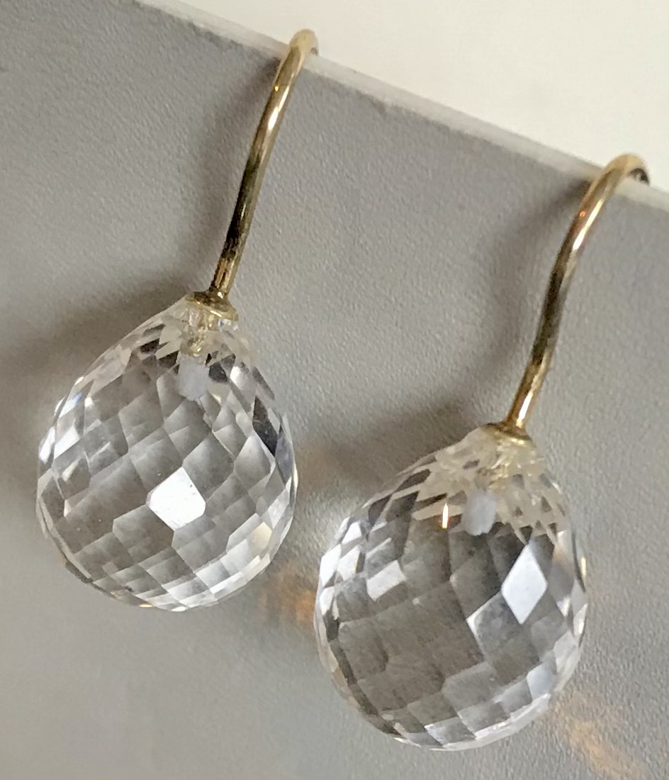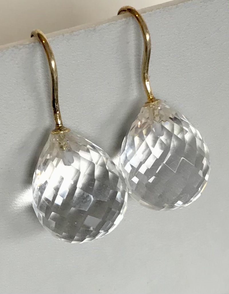 Diese elegant facettierten Bergkristall Pampeln haben eine Größe von 16x13 mm und sind an 925 Silber Haken vergoldet befestigt.