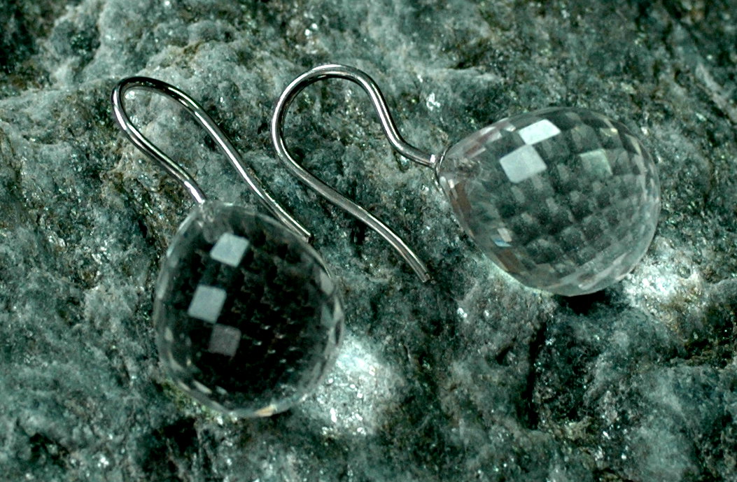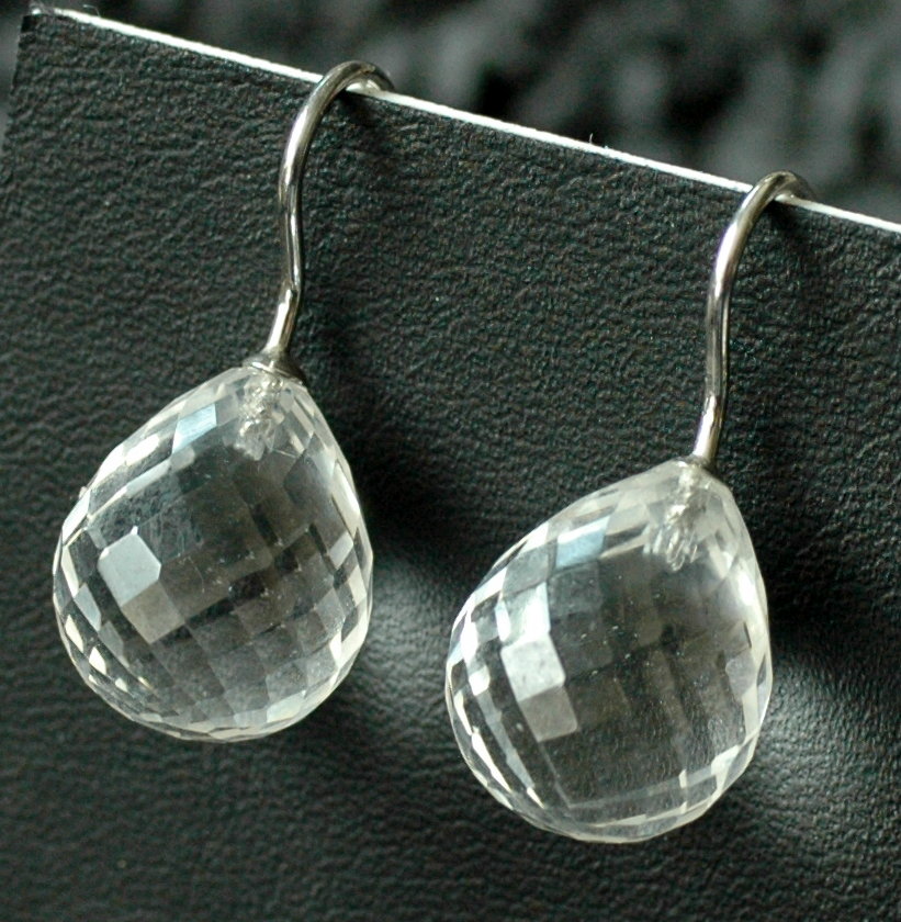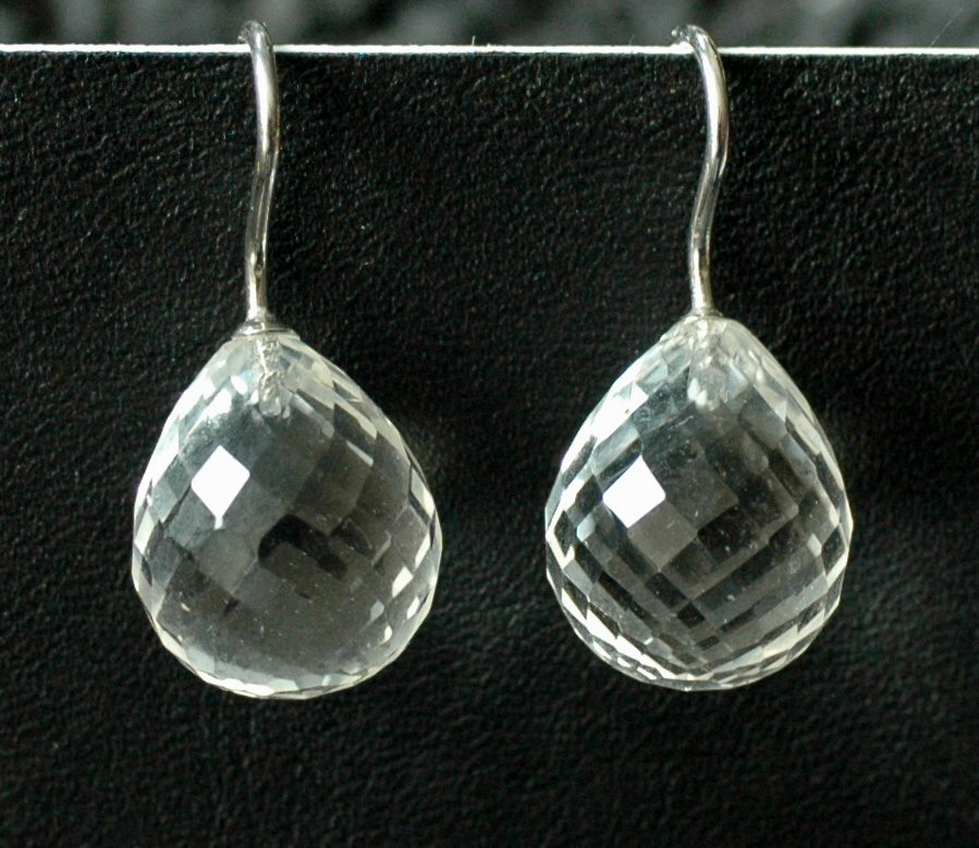 Diese elegant facettierten Bergkristall Pampeln haben eine Größe von 16x13 mm und sind an 925 Silber Haken befestigt.
