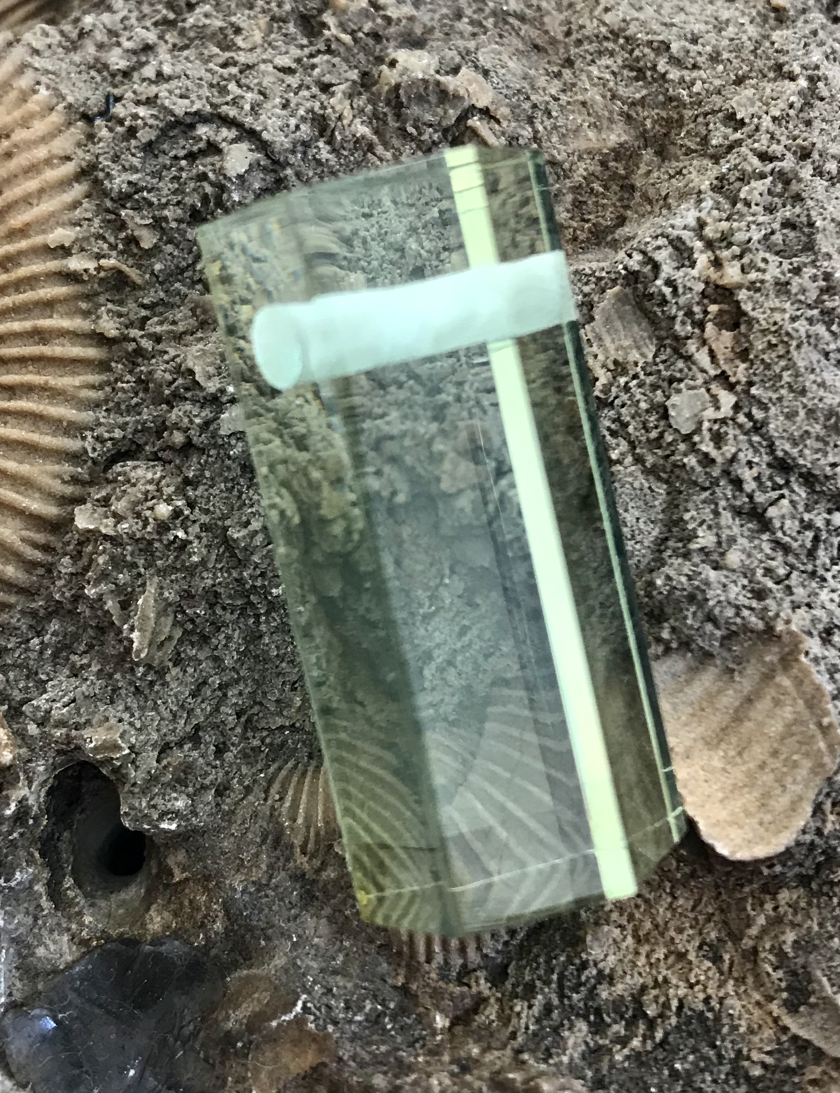 Einmalig schöner grüner Bernstein Anhänger in 6eck Form geschliffen und 3mm gebohrt.