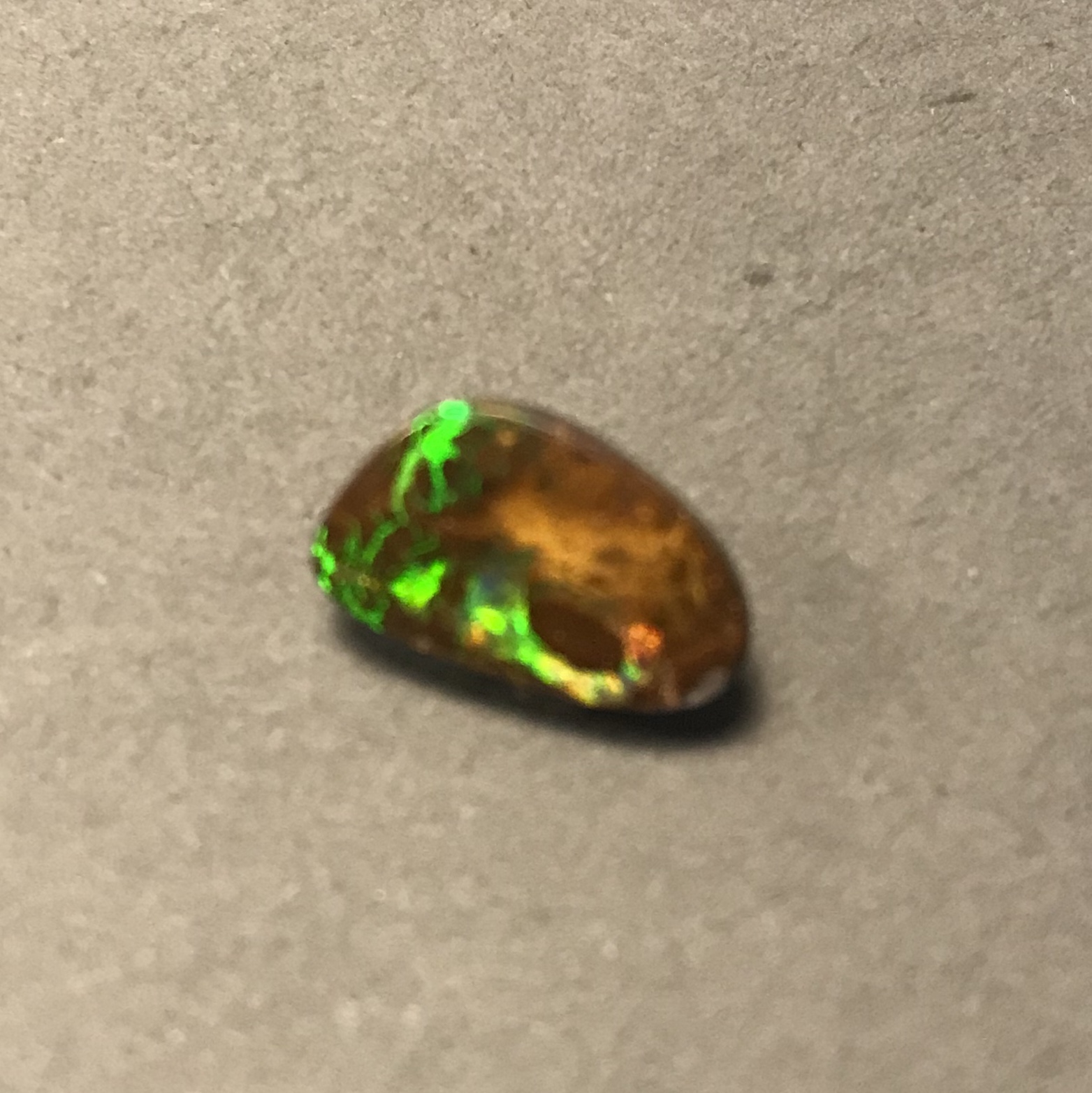 Exklusiver australischer Boulder Opal in Fantasieform geschliffen. Dieser traumhafte Opal hat einen wunderschönen