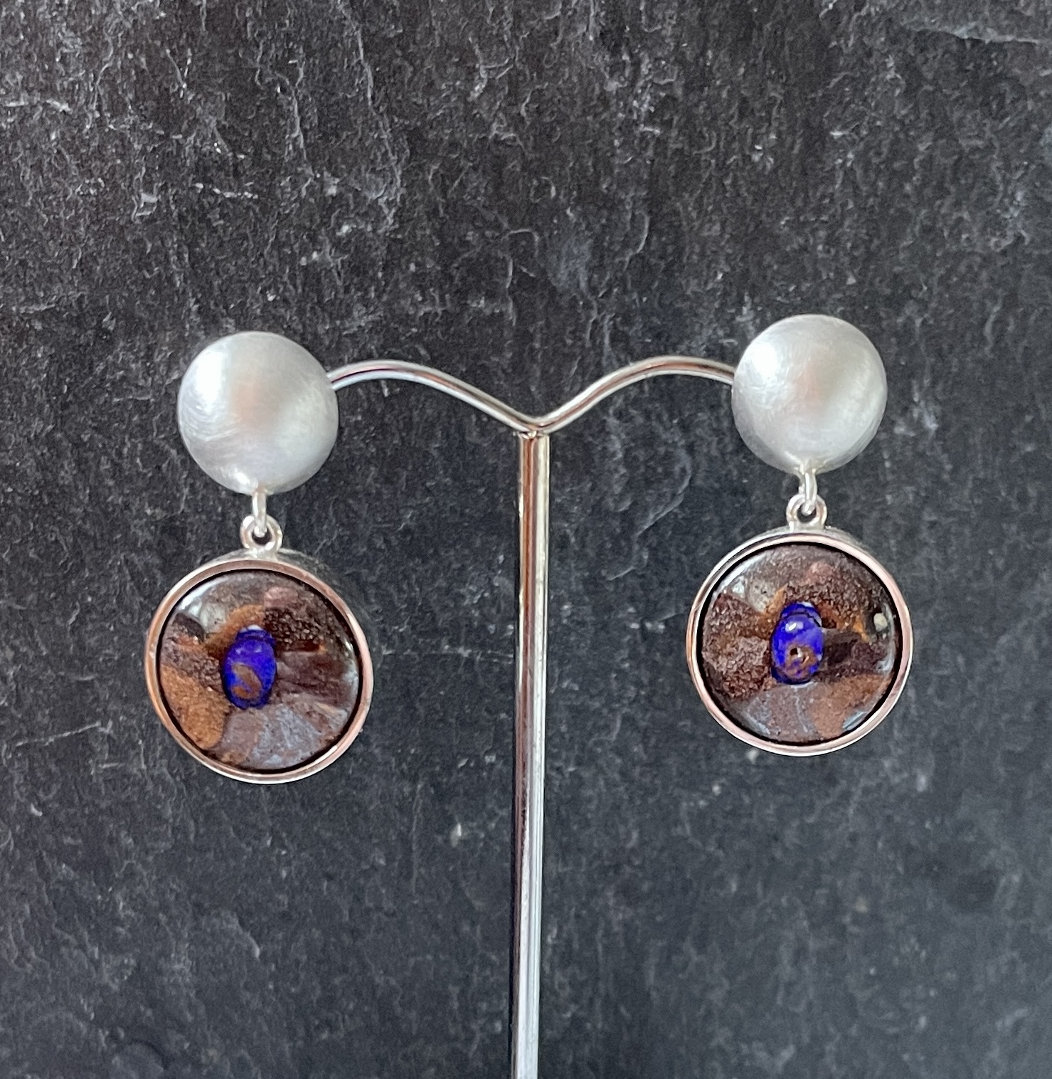 Ob zum lässigen Steetlook oder zum kleinen Schwarzen - mit diesen Ohrsteckern können Sie sich immer stilvoll in Szene setzen. Die runden blau schimmernden Boulder-Opale machen diesen Ohrschmuck einmalig und bilden den idealen Rahmen für Ihr Gesicht.