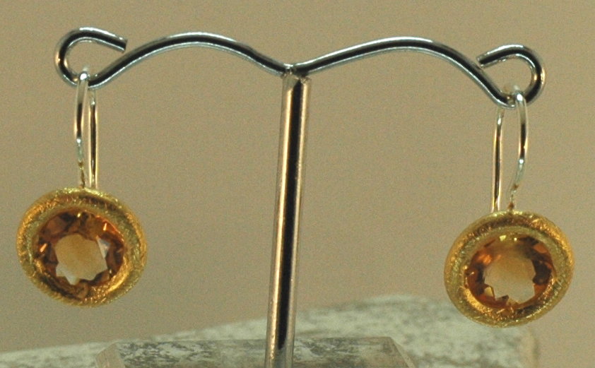 Prächtig und modern zugleich präsentieren sich diese Citrin-Ohrhänger mit zahlreichen Facetten, eingefasst in vergoldetes Silber mit eismattem Finish.