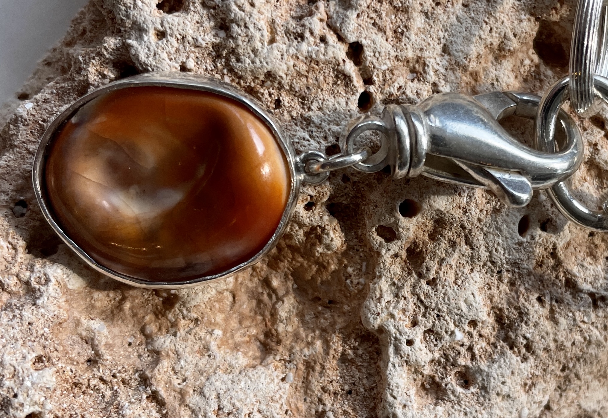 Zusätzlich ist an diesen Anhänger ein sehr schöner drehbarer Karabinerhaken angebracht.