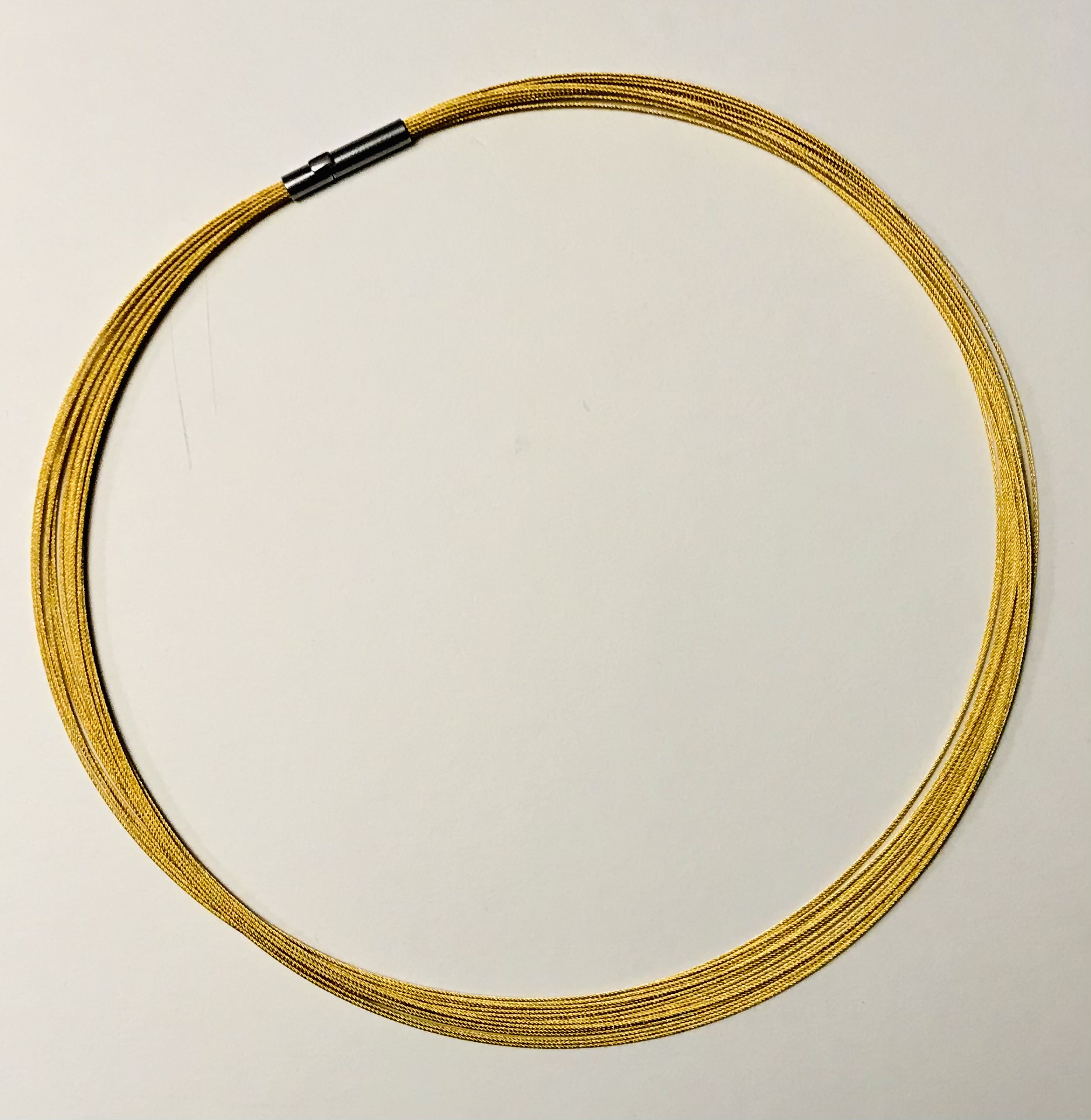 Sehr schönes Edelstahl-Band, 20-reihig golden color in 45 cm Länge. Dieses Band lässt sich an alle Anhänger anbringen, die mit einer Anhängeröse ab 4 mm versehen sind. Der neuartige Verschluss ist sehr einfach in seiner Handhabung und fügt sich perfekt an das praktische Band, das man auch solo tragen kann.