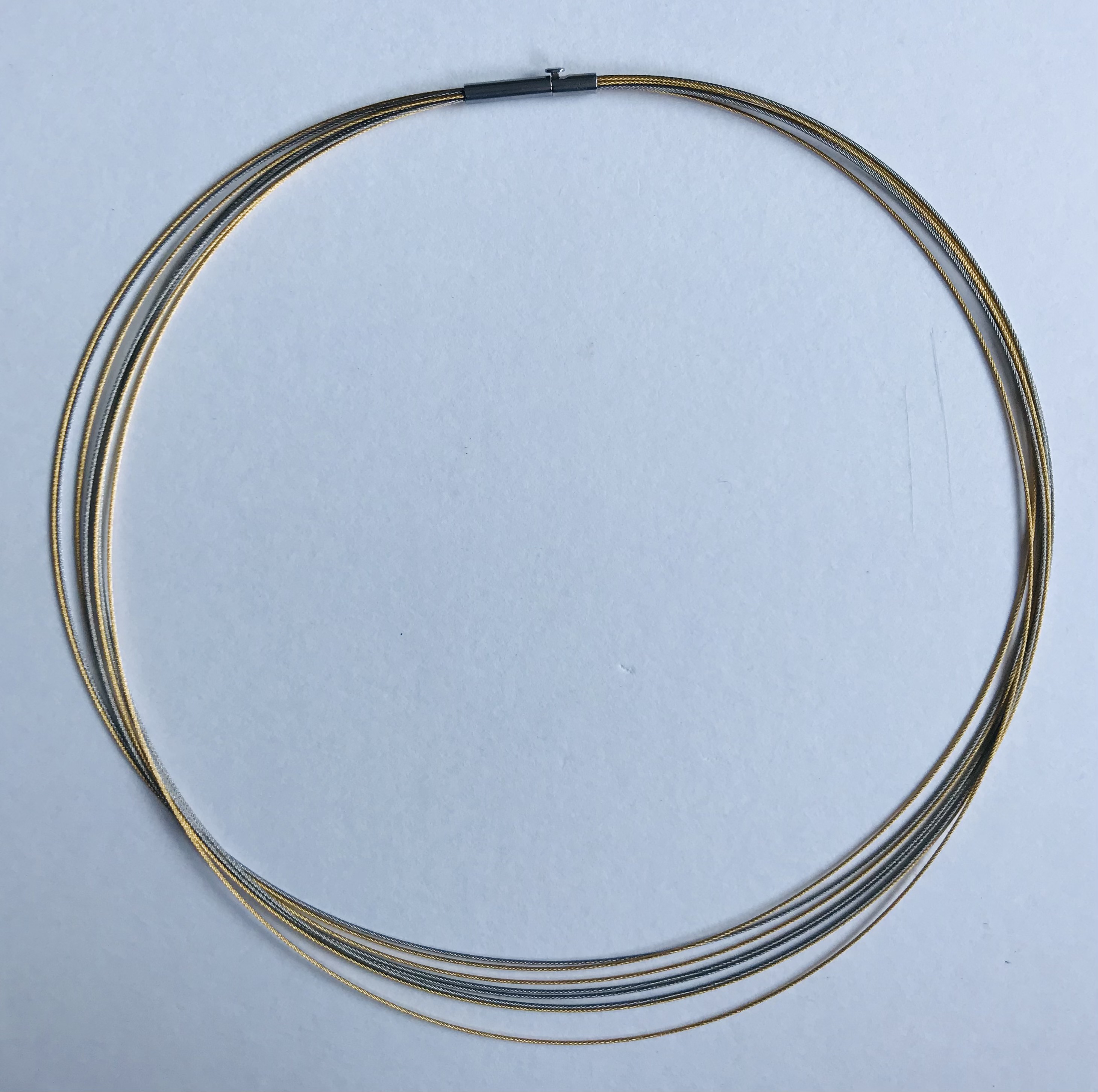 Sehr schönes Edelstahl-Band, 5-reihig multi color in 42 cm Länge. Dieses Band lässt sich an alle Anhänger anbringen, die mit einer Anhängeröse ab 2 mm versehen sind. Der neuartige Verschluss ist sehr einfach in seiner Handhabung und fügt sich perfekt an das praktische Band, das man auch solo tragen kann.