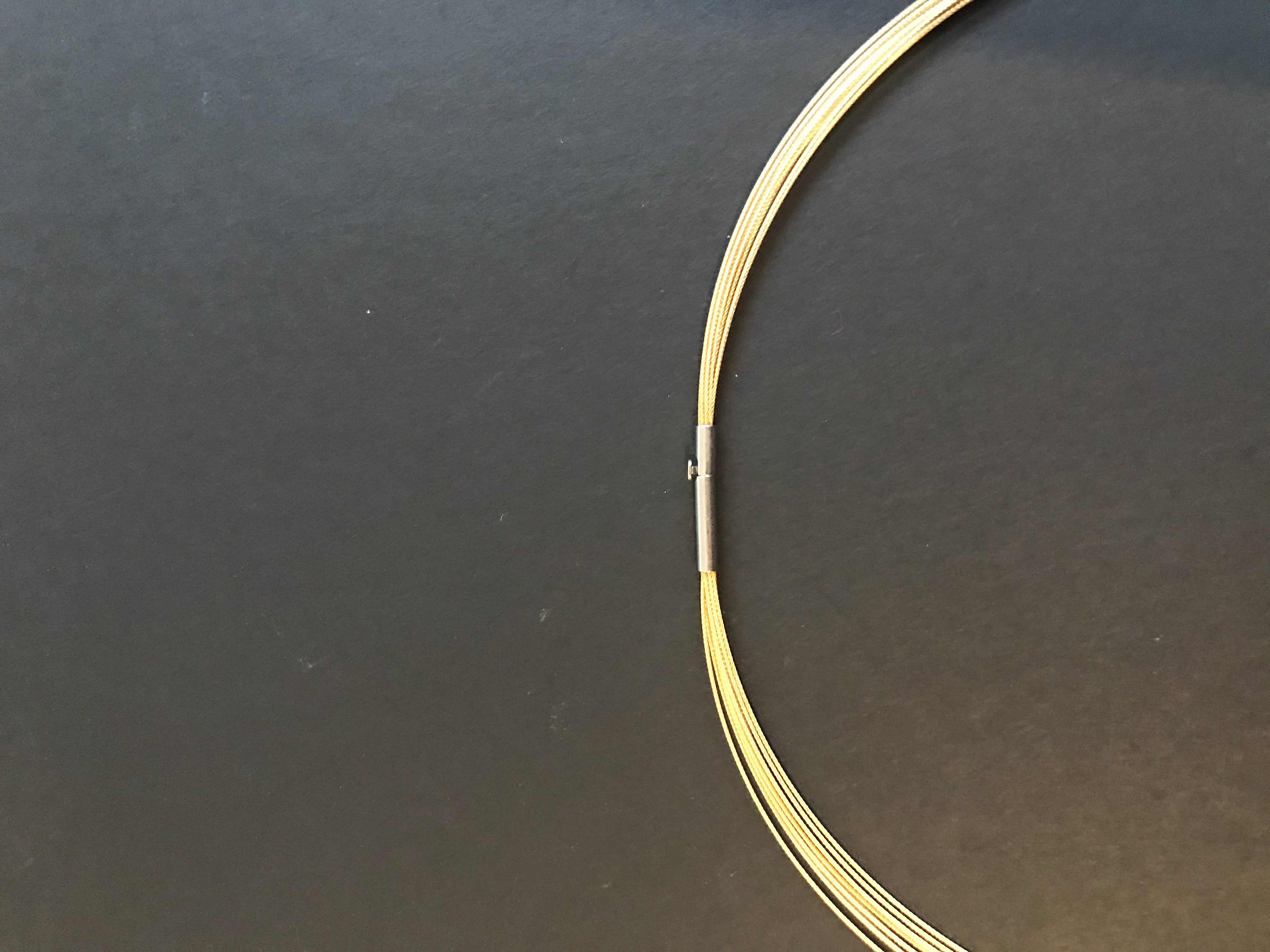 Sehr schönes Edelstahl-Band in golden color, 10-reihig in 42 cm Länge. Dieses Band lässt sich an alle Anhänger anbringen, die mit einer Anhängeröse ab 3 mm versehen sind. Der neuartige Verschluss ist sehr einfach in seiner Handhabung und fügt sich perfekt an das praktische Band, das man auch solo tragen kann.