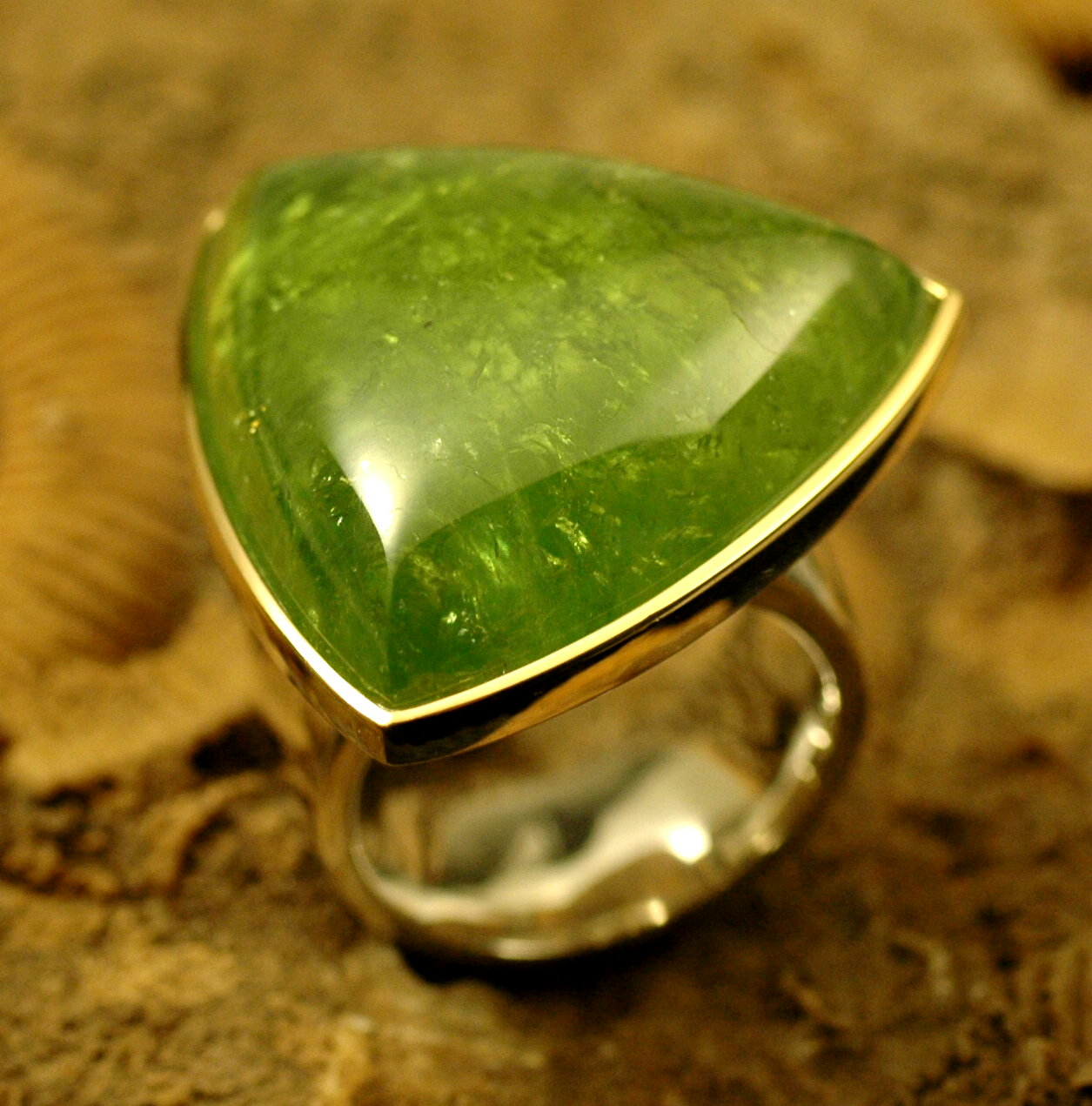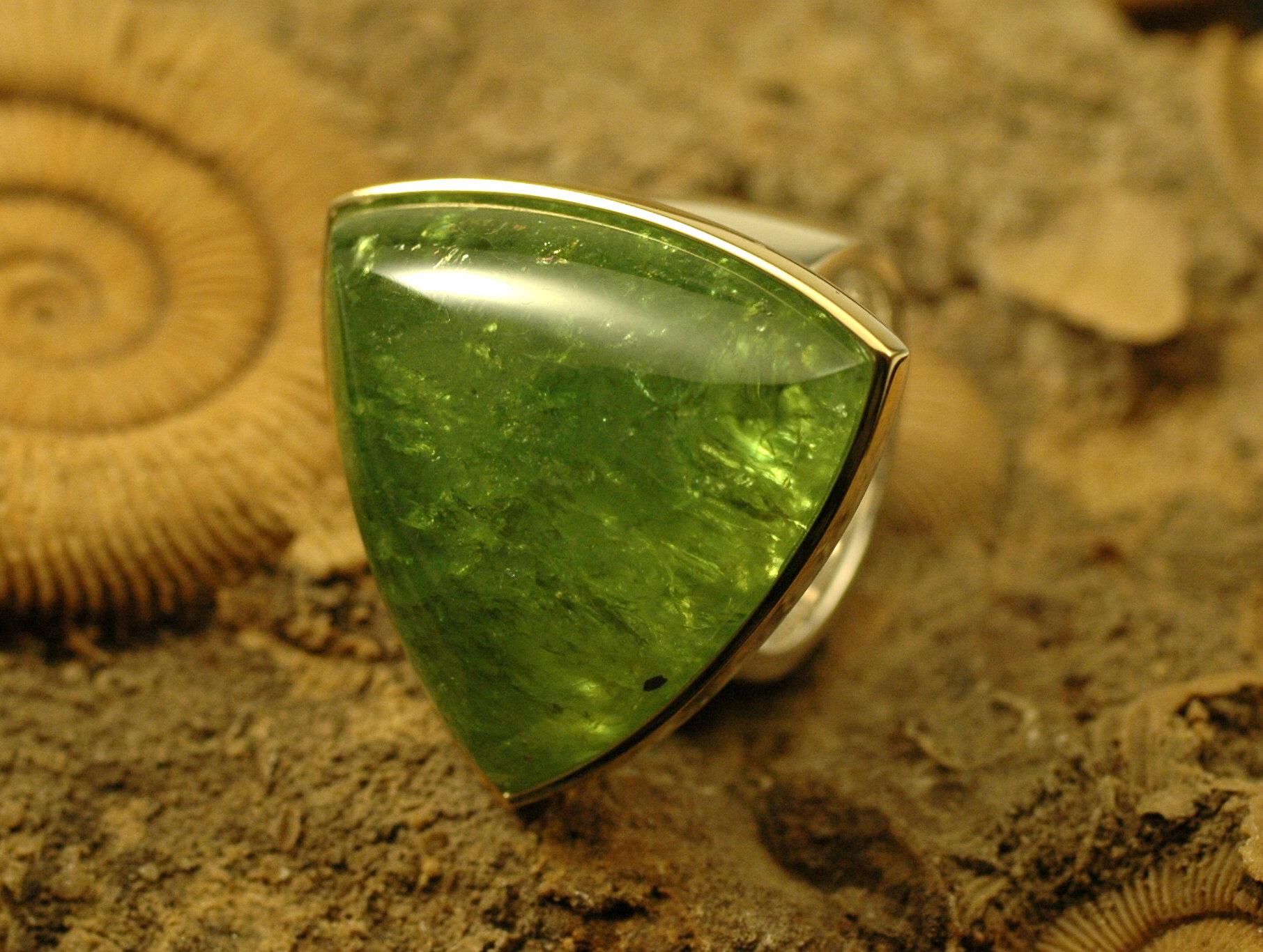 Das Schmuckstück wurde in massiver Qualität handgefertigt. Dieser Stein hat eine Größe von ca. 28x28 mm und ist in Triangelform geschliffen.