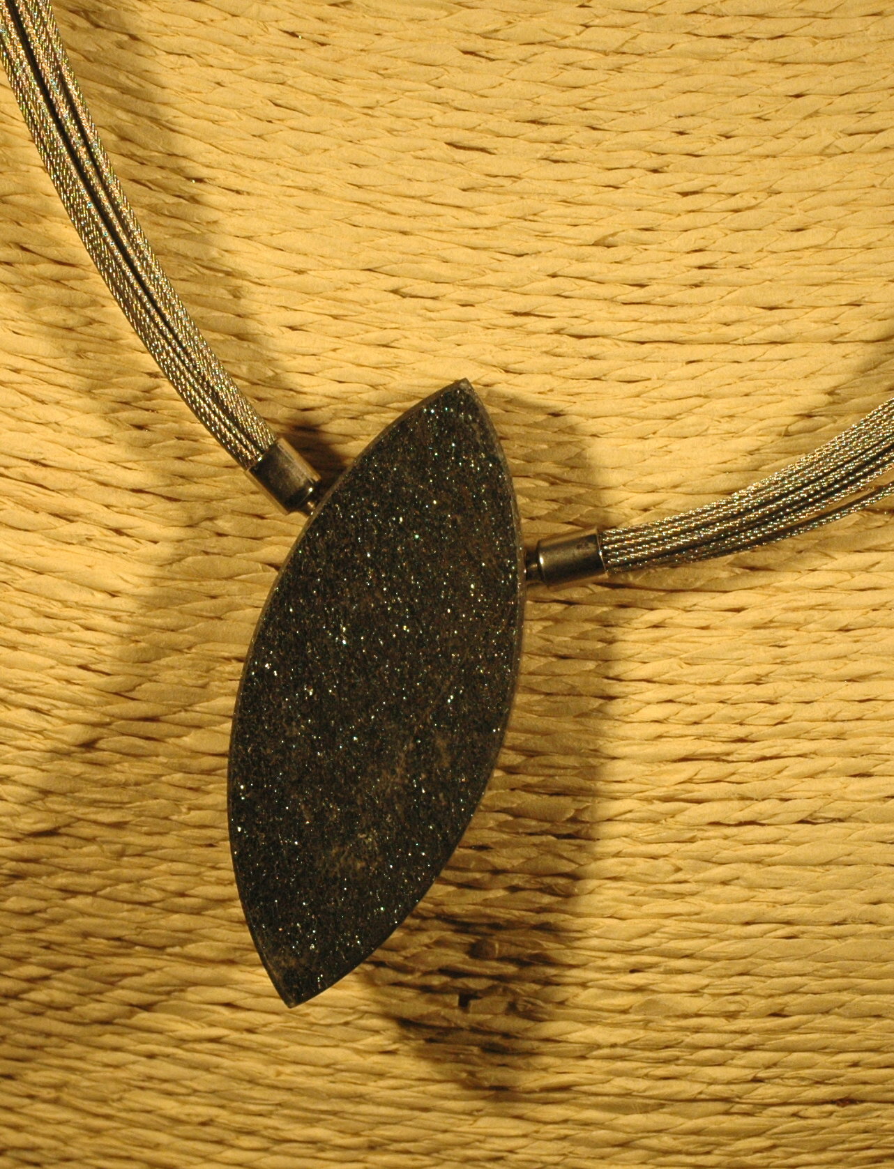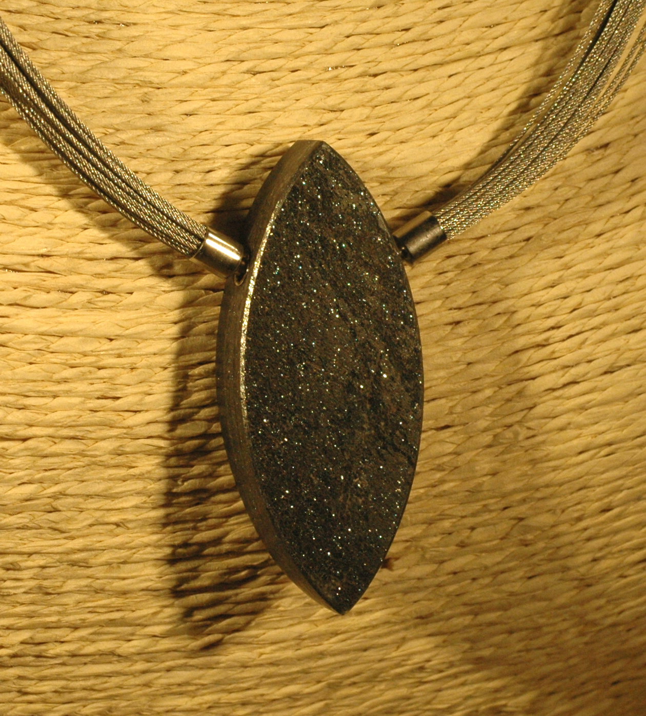 Toller Hämatit Anhänger in Navetteform mit schönem metallischem Schimmer.