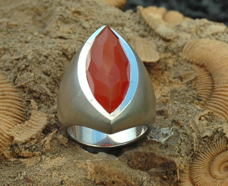 Bemerkenswerter massiver Silberring mit einem Stein aus facettiertem Achat (Karneol).