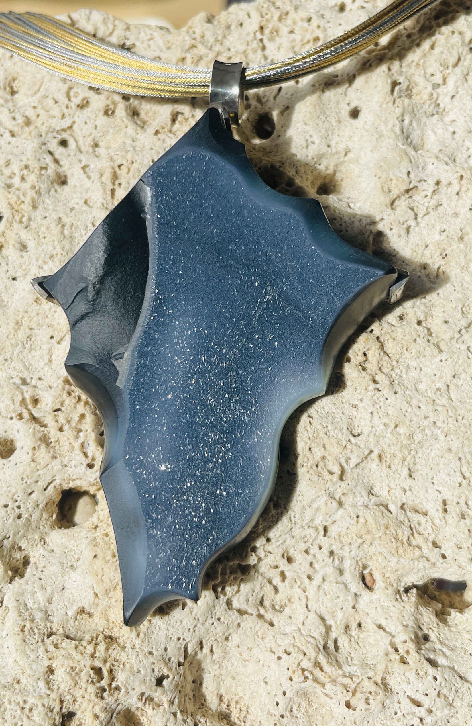 Wie das Funkeln eines Sternenhimmels präsentiert sich dieser wunderschöne Kristallacht-Anhänger in Fantasieform,