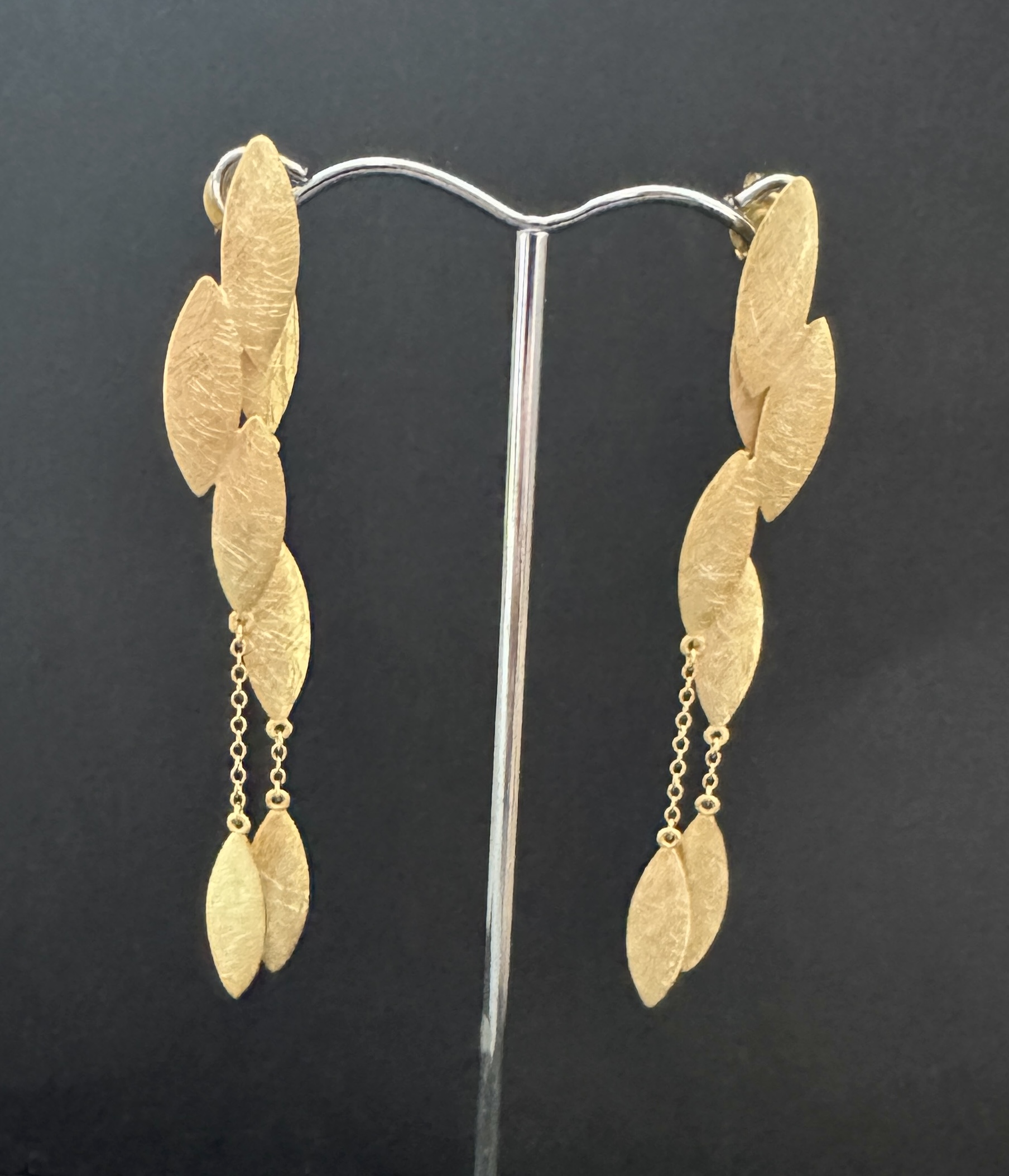 Designer-Ohrstecker in massivem 925 Silber vergoldet mit Plättchen in Navettform, eismatt gebürstet in trendigem Style!