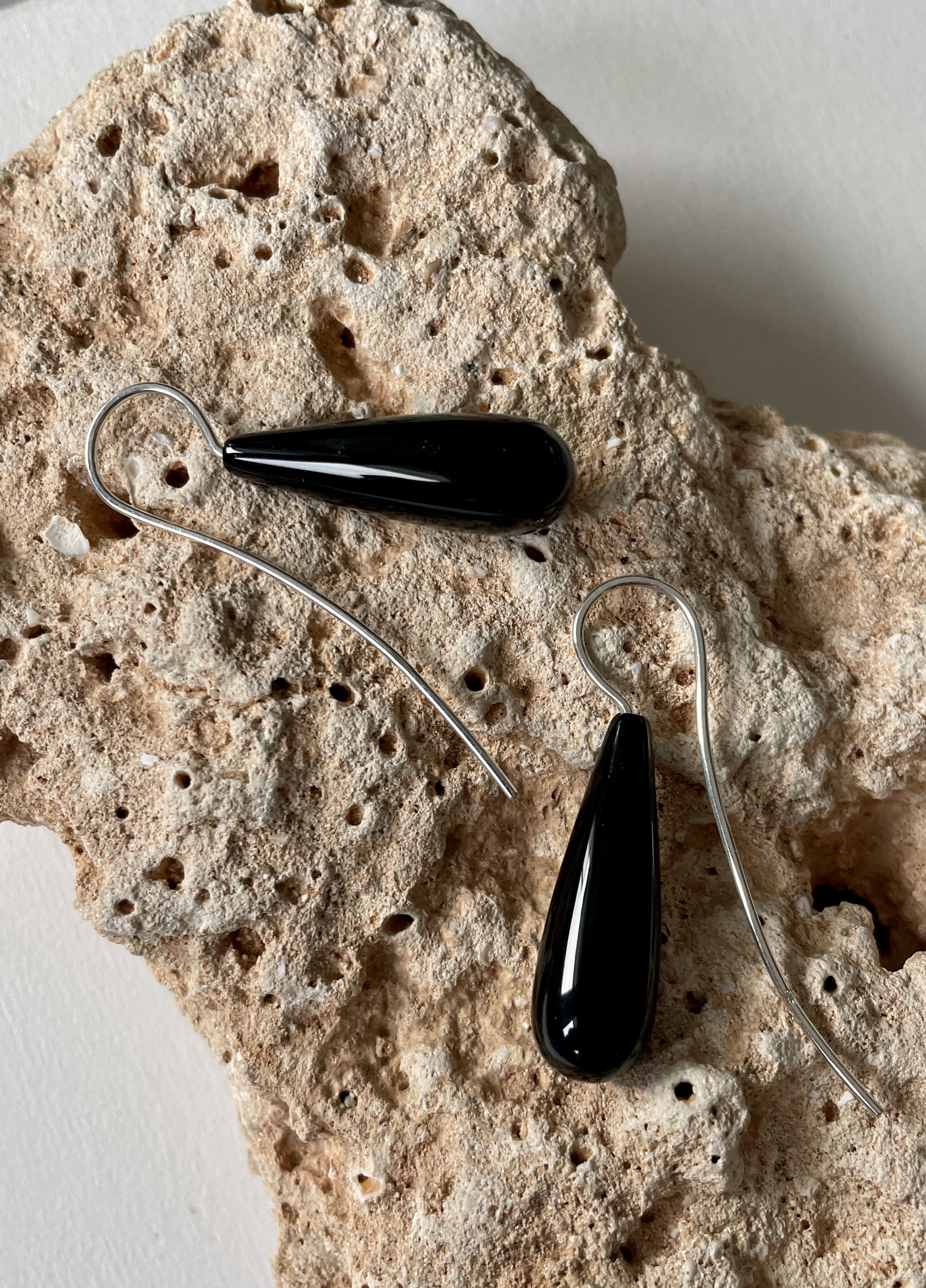 Größe Onyx ca. 30 x 10 mm die Hänger insgesamt 34 x 10 mm mm. Der Silberhaken ist ca. 42 mm lang und starr an der Fassung angebracht, er besticht durch seinen einmaligen Tragekomfort.
