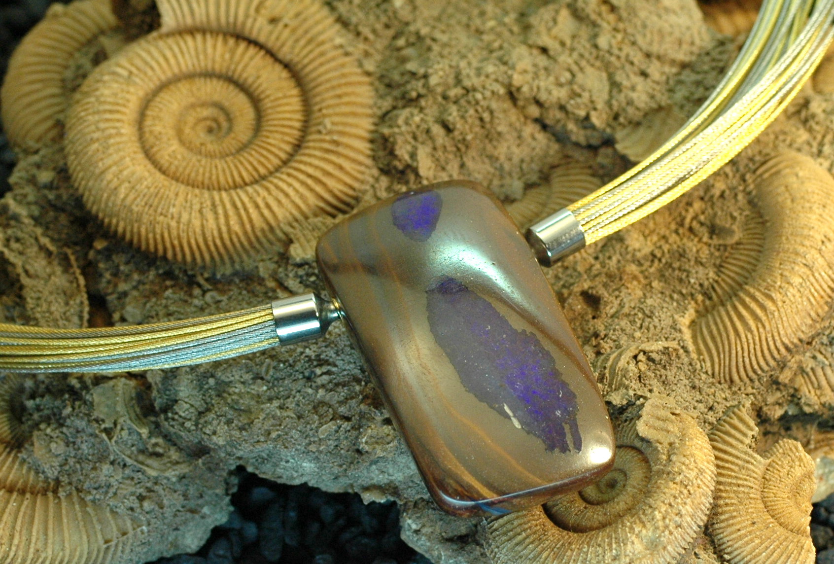 Außergewöhnlicher und seltener Opal-Matrix Anhänger mit Wechselschließe. Dieser Stein hat einen wunderschönen blauen Schimmer und weist mit einem tollen Glanz auf.