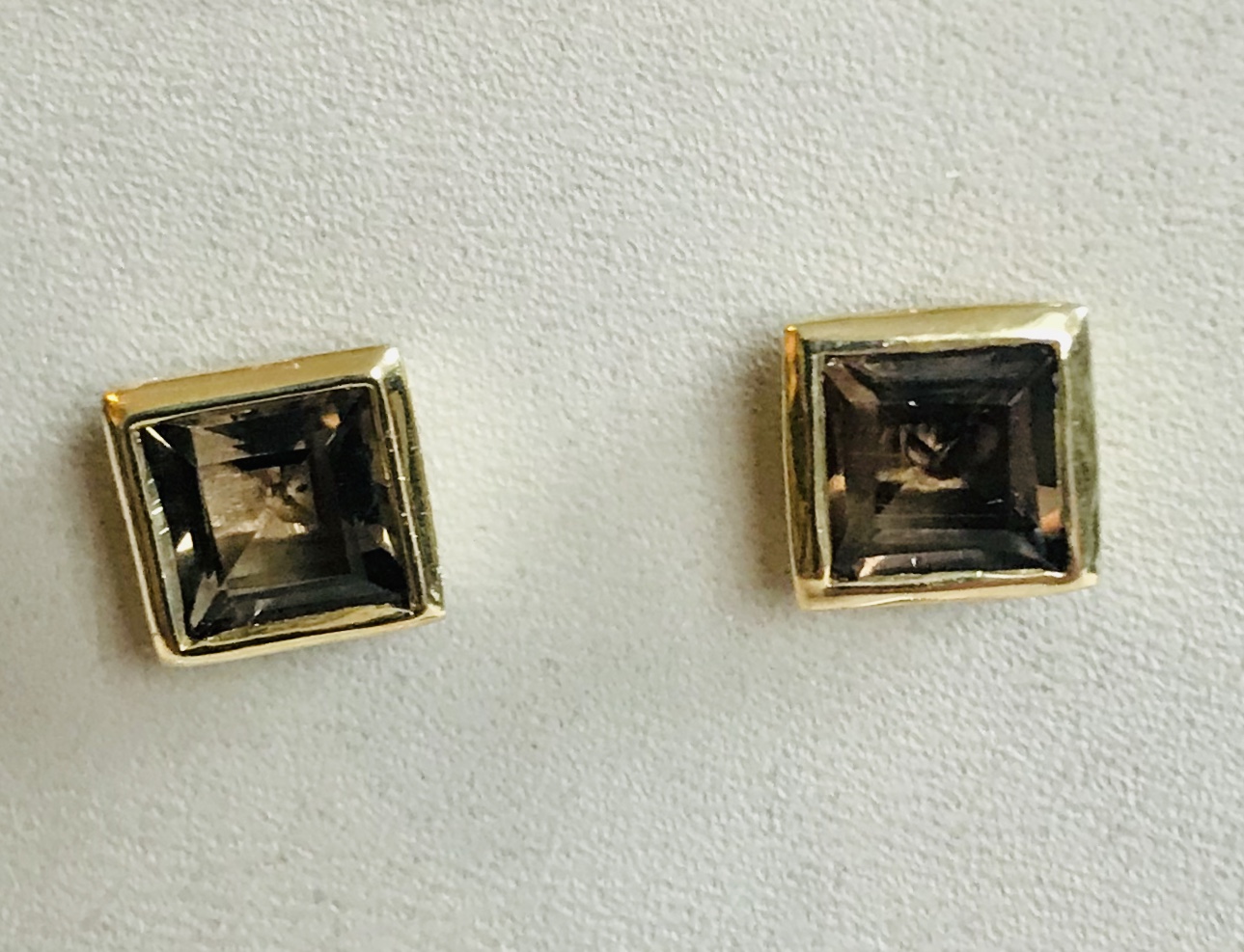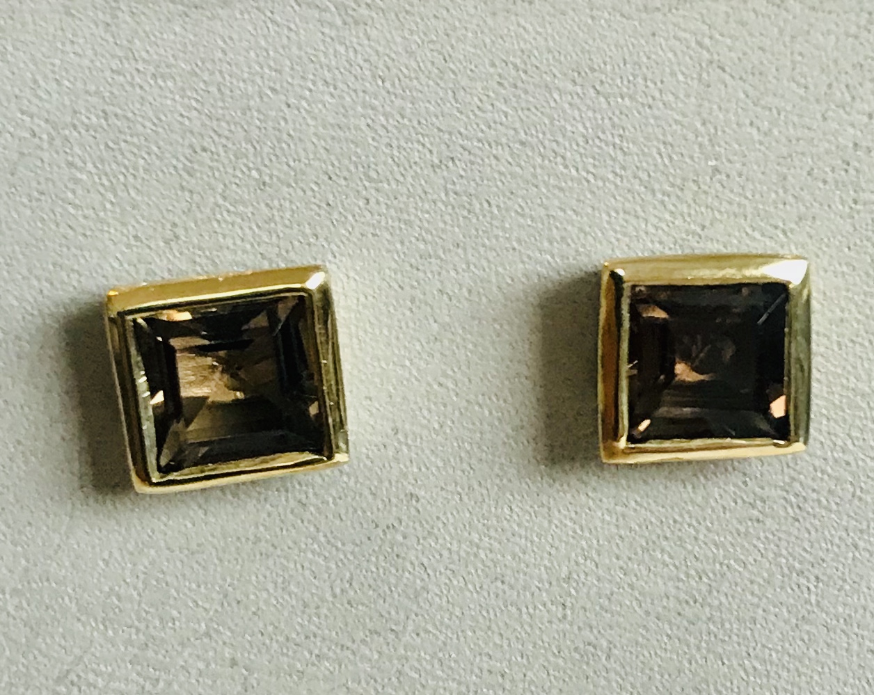 Steingröße: 7 mm Rauchquarz carre facettiert.