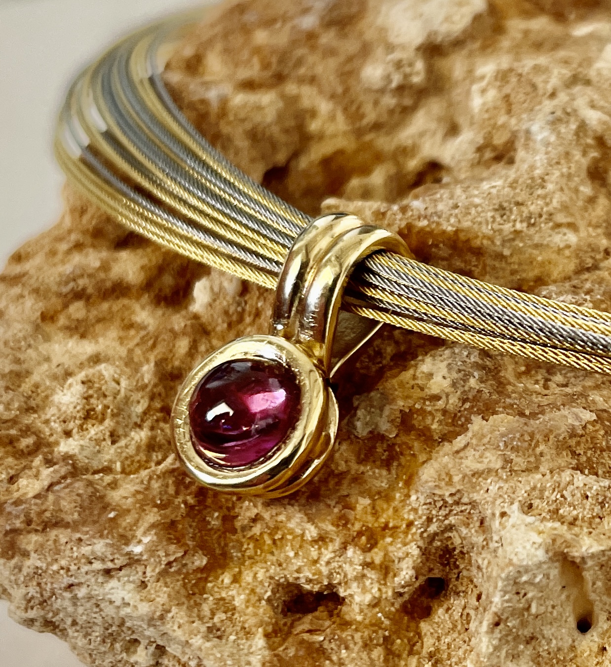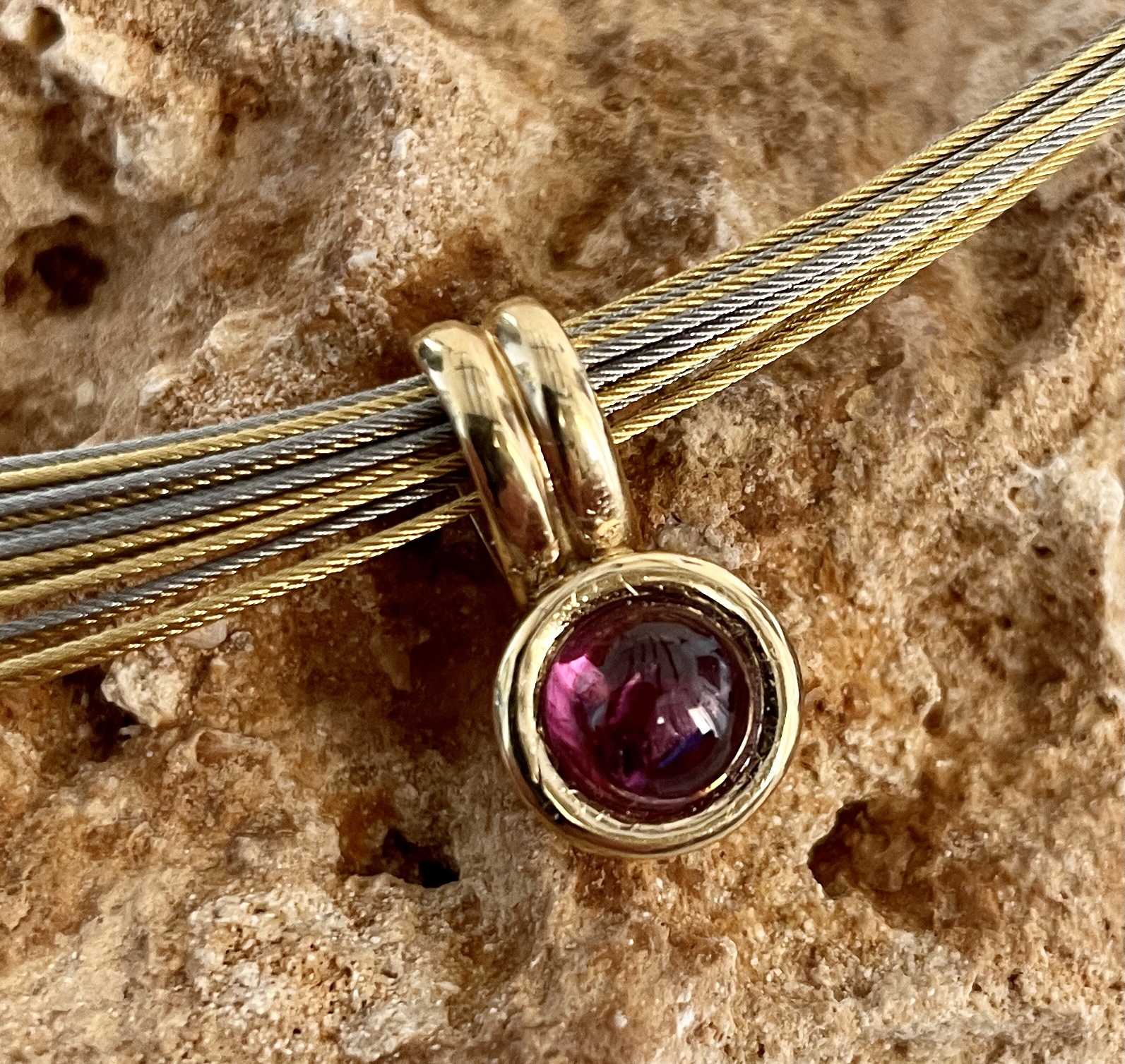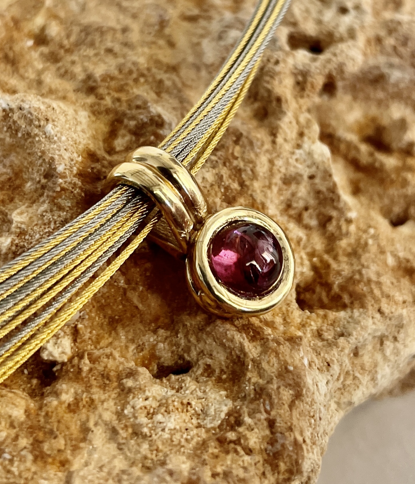 Erlesen präsentiert sich dieser runde ca.7 mm große Rosa Turmalin Cabuchon Anhänger mit seinem prächtigen Glanz in rosa und der formvollendeten
