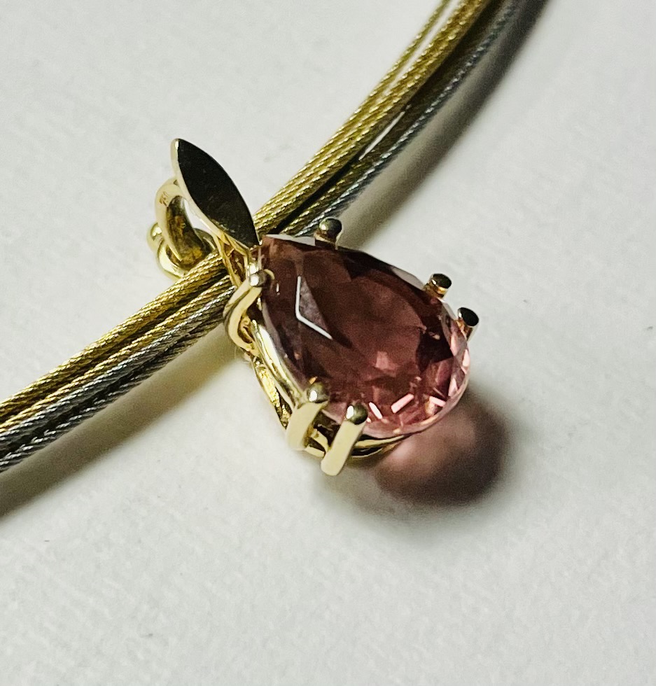 Elegant präsentiert sich dieser Tropfenförmige 11 x 8,5 mm Rosa-Turmalin Anhänger mit seinem prächtigen Glanz und der formvollendeten