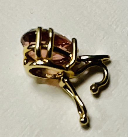 750GG Krappenfassung. Bei der handgearbeiteten Klippschlaufe kann man den Anhänger problemlos in eine Perlenkette o.ä. einhängen.