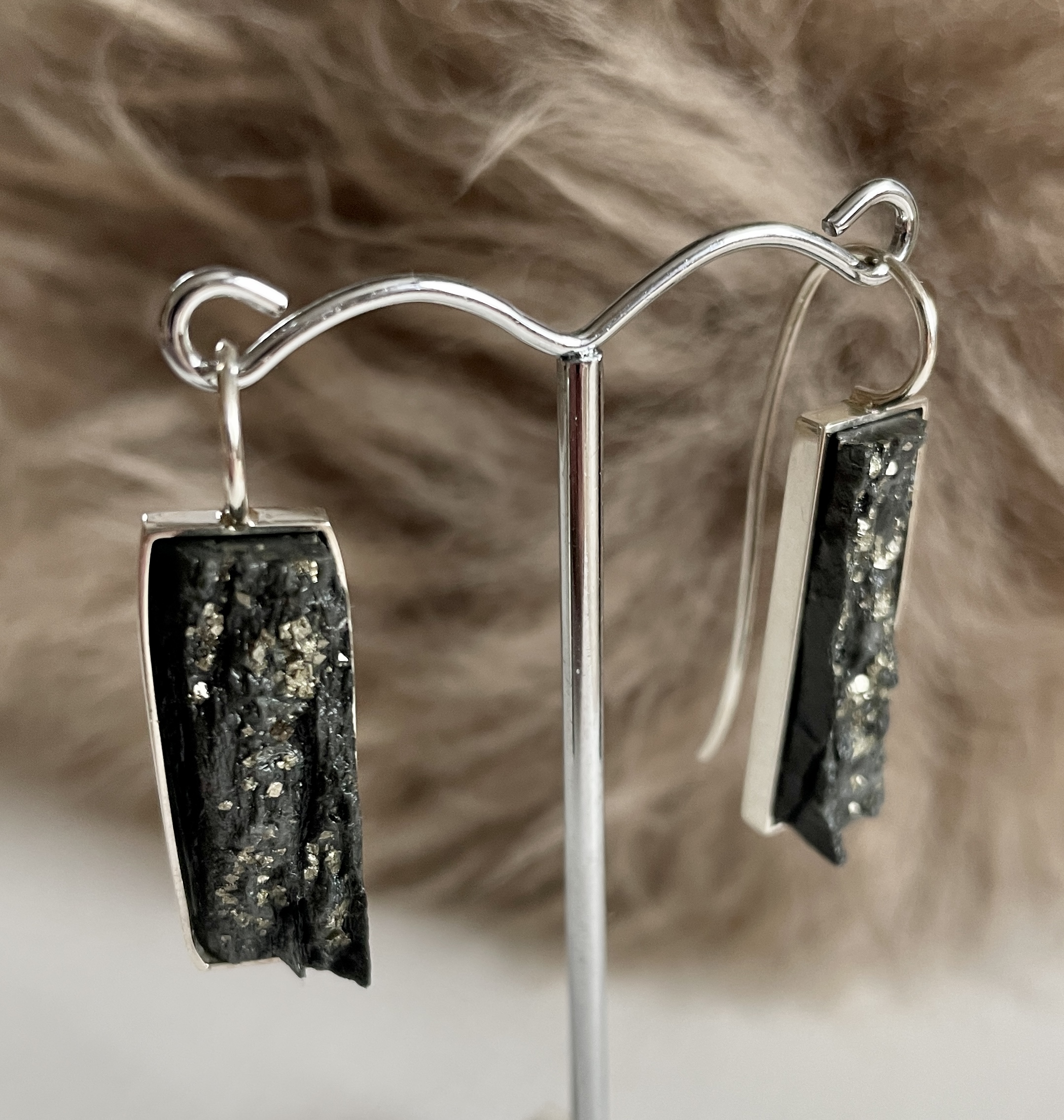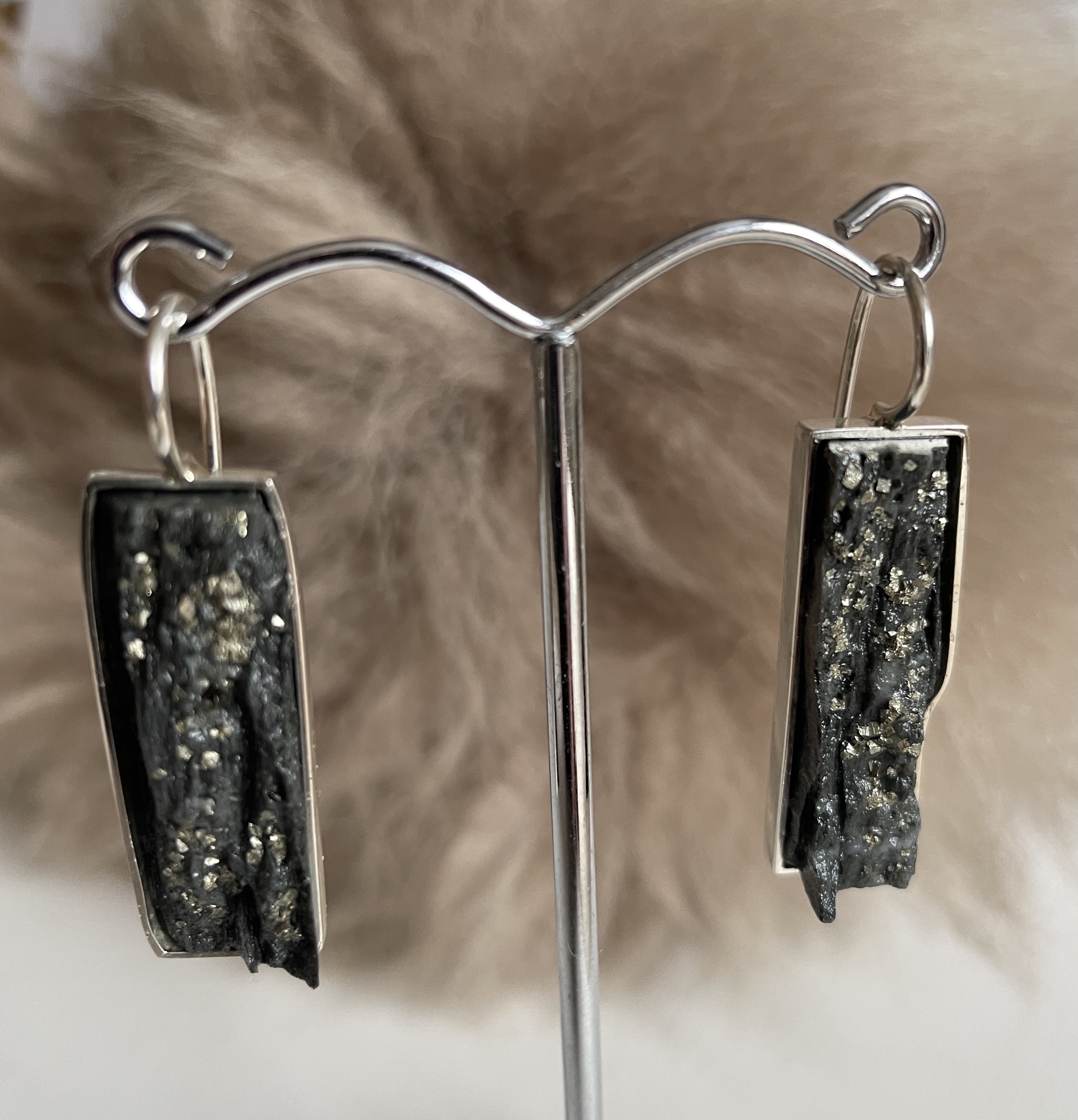 Ob zum lässigen Steetlook oder zum kleinen Schwarzen - mit diesen Ohrhängern können Sie sich immer stilvoll in Szene setzen. Die rechteckigen, glänzenden Schiefer-Pyrit Kristalle machen diesen Ohrschmuck einmalig und bilden den idealen Rahmen für Ihr Gesicht.