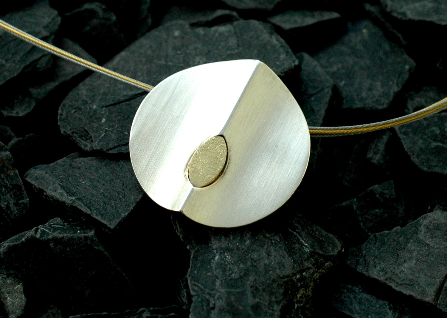 Dieser attraktive Silberanhänger kombiniert geschickt modischen Style und ausgefallene Goldschmiedearbeit. Das vergoldete Navette fügt sich perfekt in das mattierte Silber ein. Im Preis nicht inbegriffen ist das 10 reihige multicolor Edelstahlband in 45cm Länge für 42 Euro.