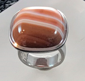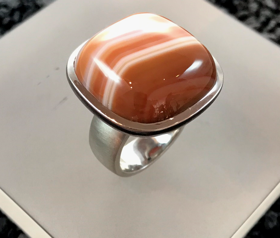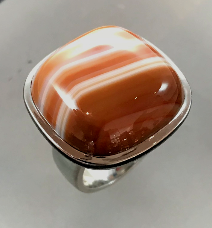 Dieses modische Schmuckstück mit einem außergewöhnlichen Streifencarneol ist so gearbeitet, dass es die Aufmerksamkeit auf sich zieht.