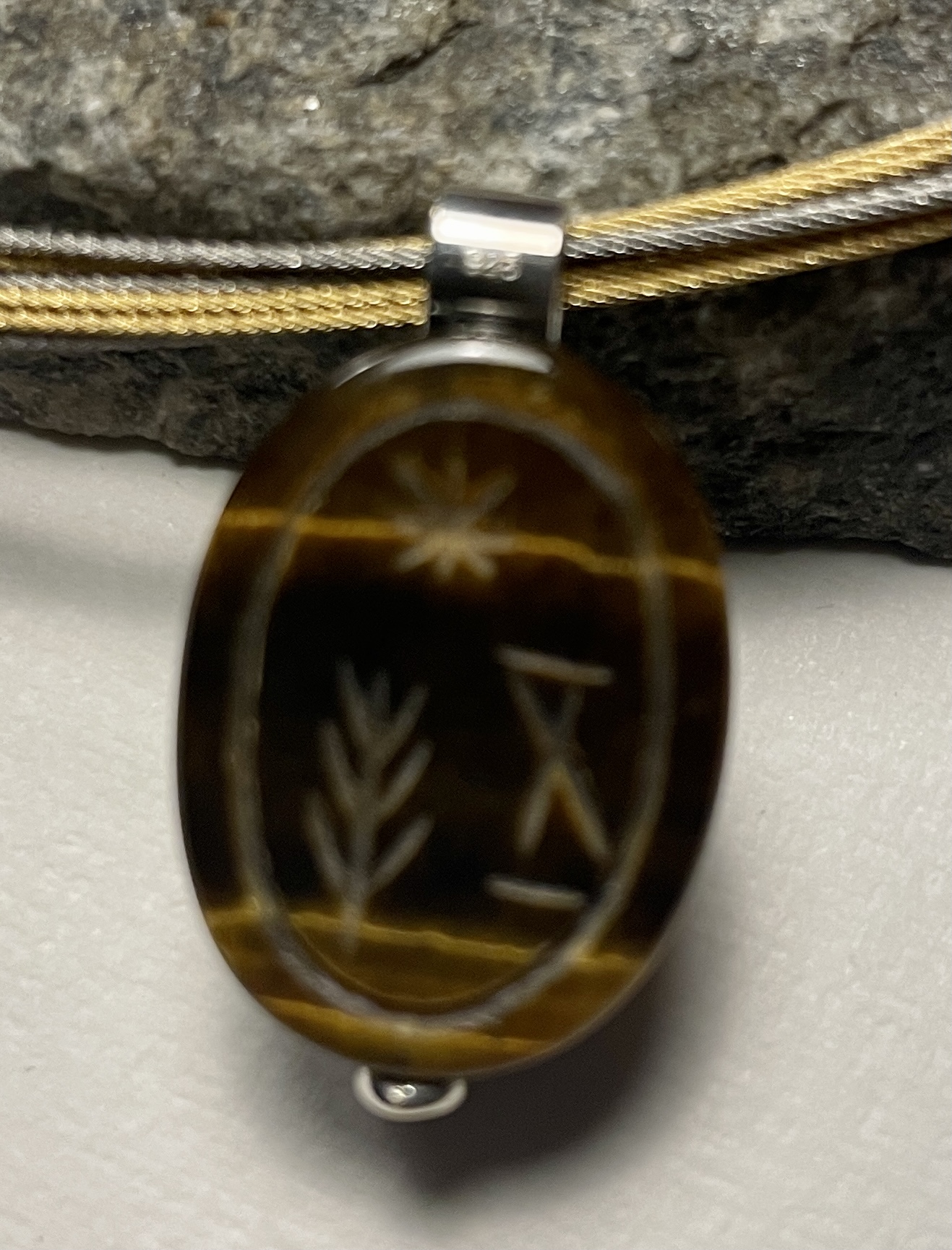 Ausgefallen schöner Skarabäus aus Tigerauge in ovaler Form geschliffen mit einer Schlaufe aus 925 Silber.