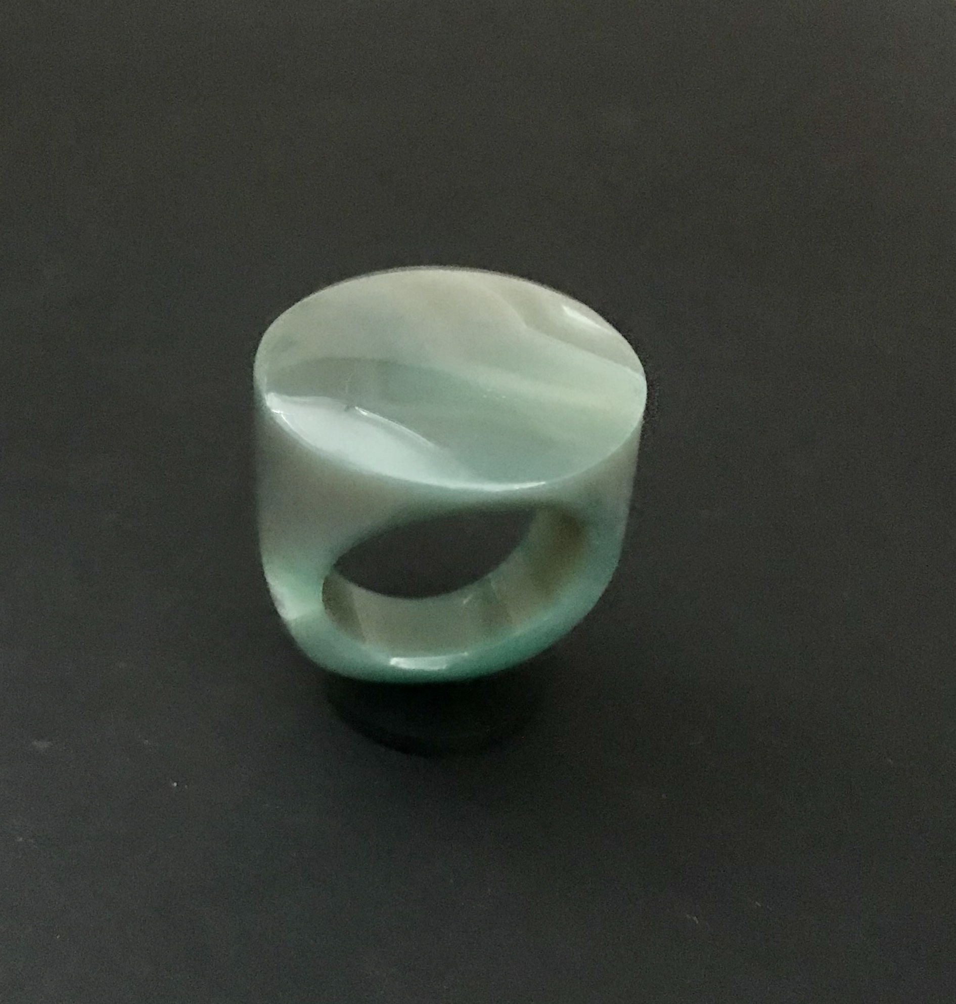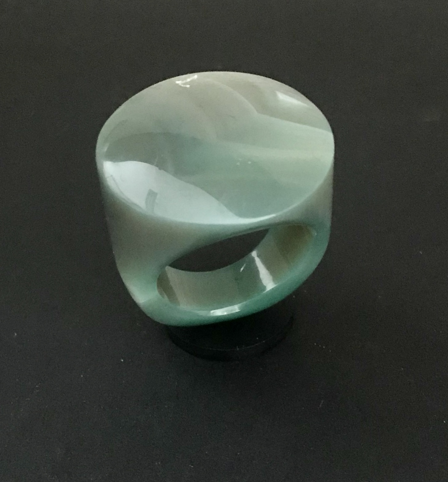 Sehr ausgefallener, handgefertigter Streifen Achat-Ring grün, mit einer Ringweite von 62.