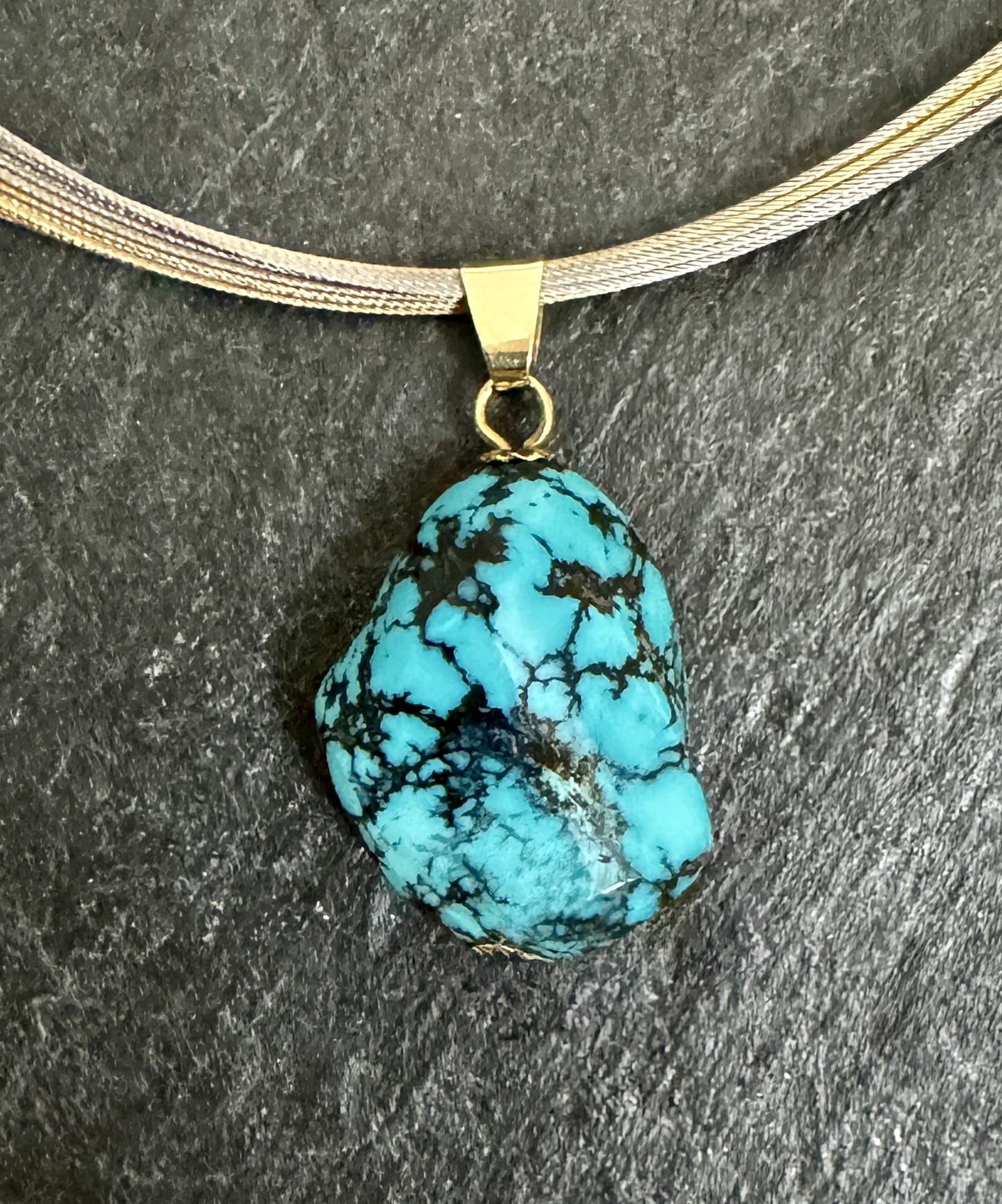Einmalig schöner Türkis Anhänger aus Persien mit einer Schlaufe aus 585 Gelbgold.