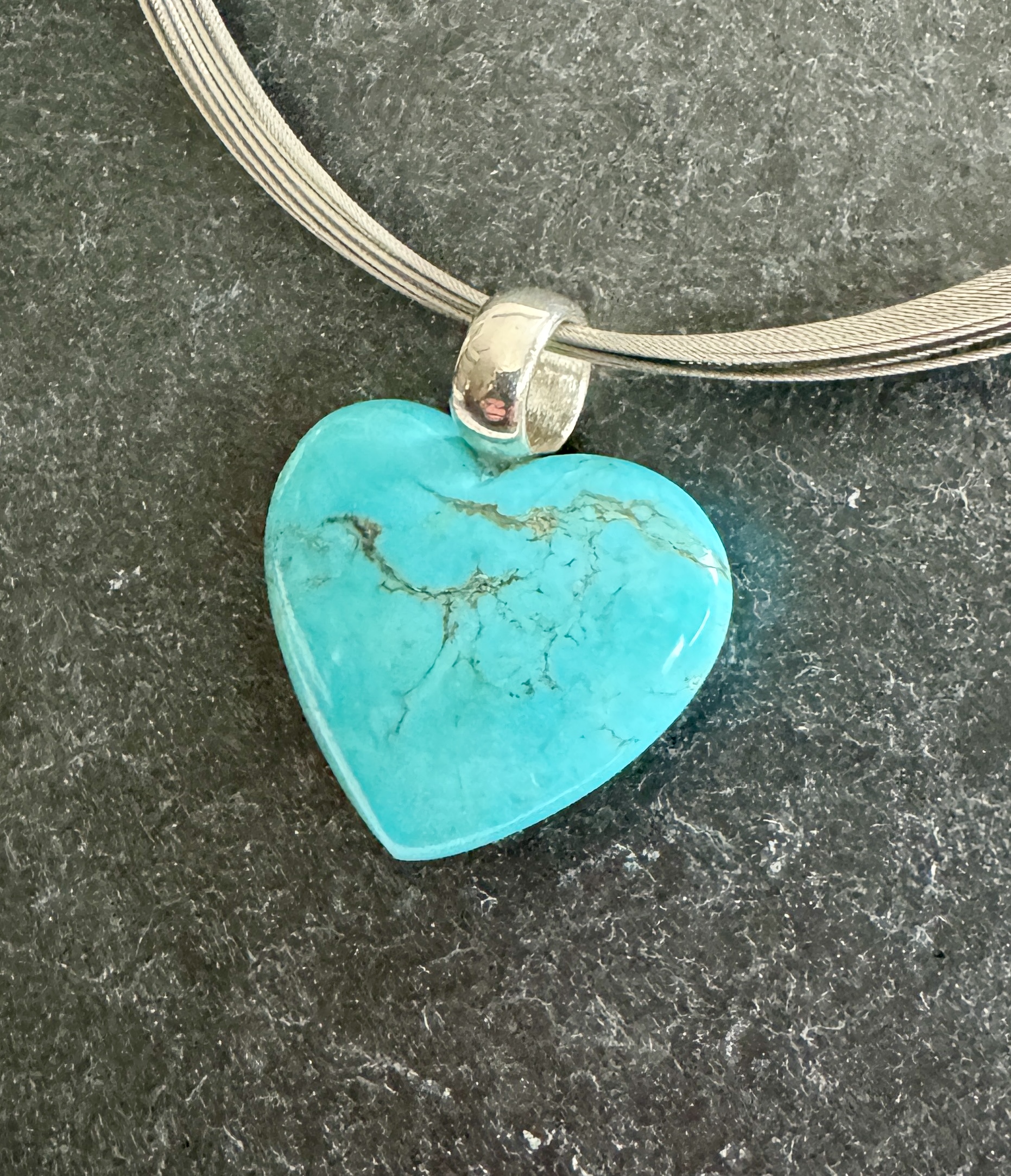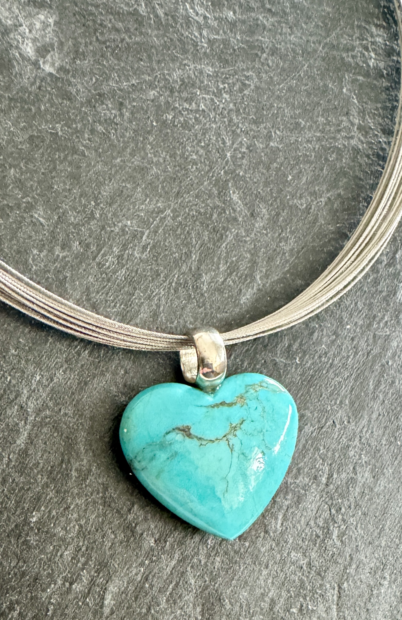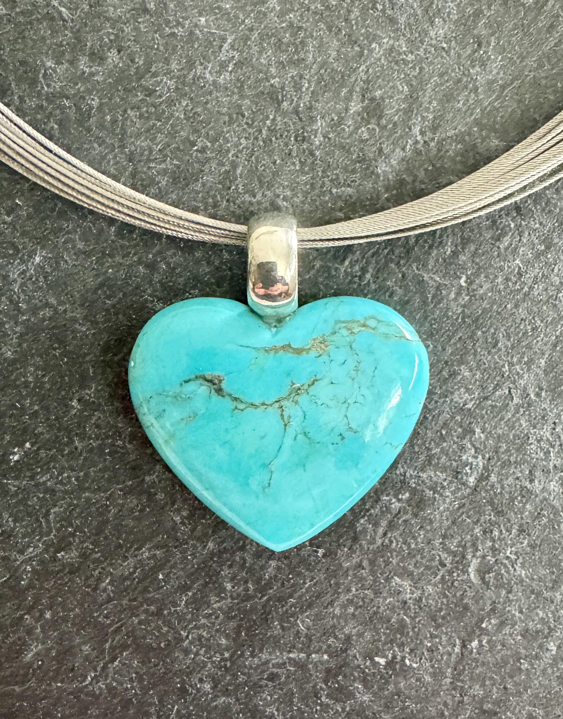 Einmalig schöner Türkis Anhänger in Herzform mit einer Schlaufe aus Silber 925.