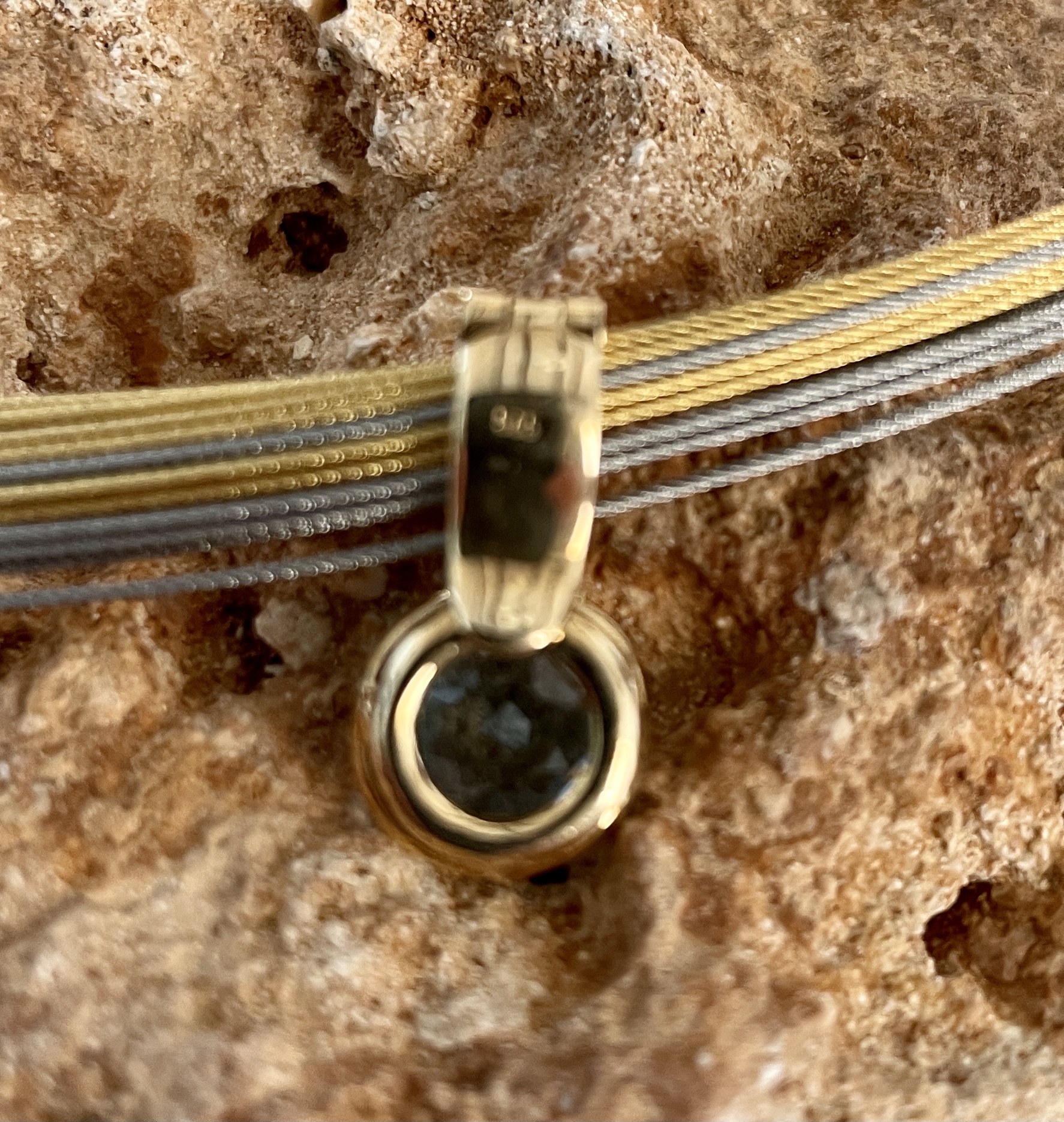 585 GG Zargenfassung. Bei der handgearbeiteten Klippschlaufe kann man den Anhänger problemlos in eine Perlenkette o.ä. einhängen.