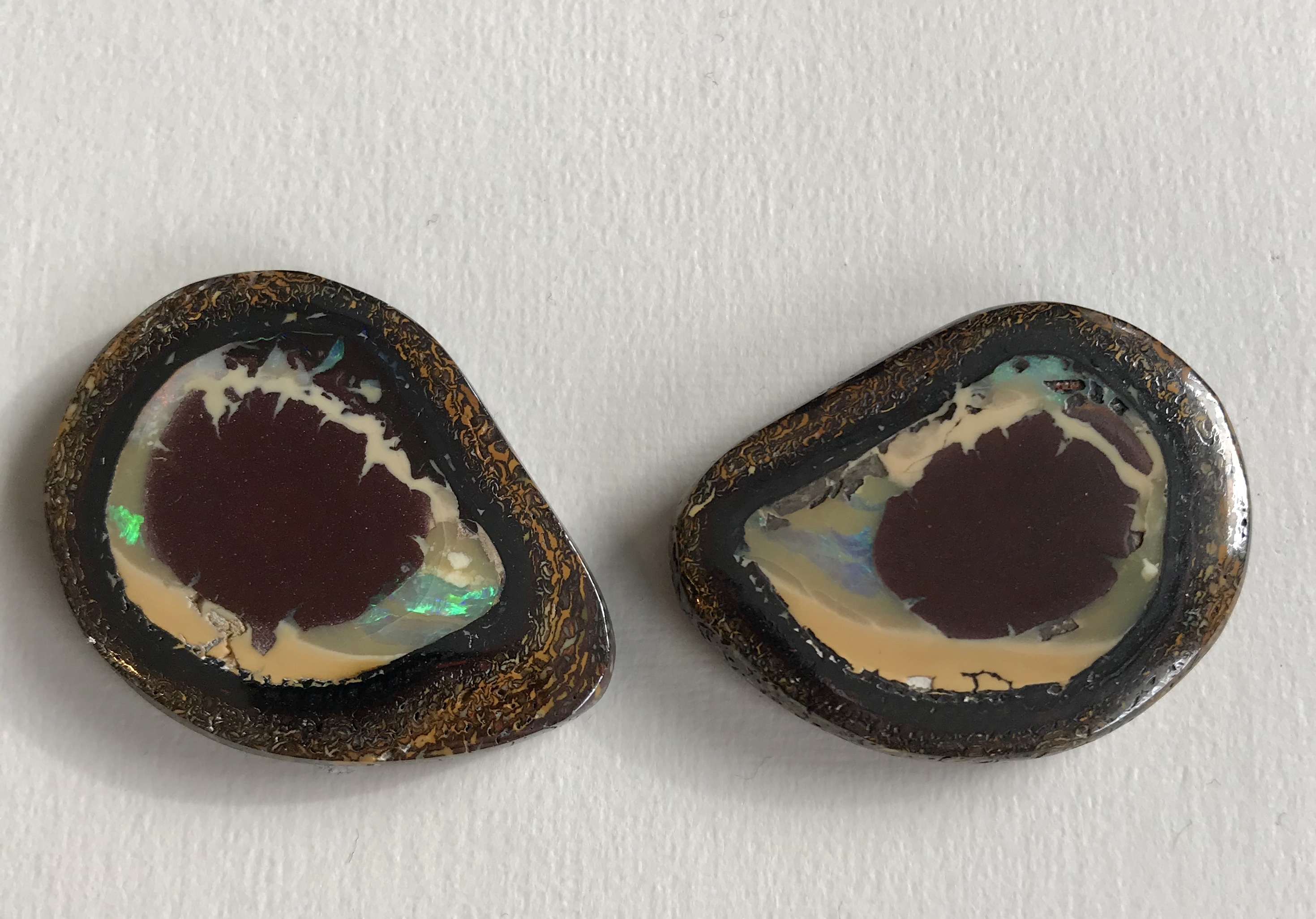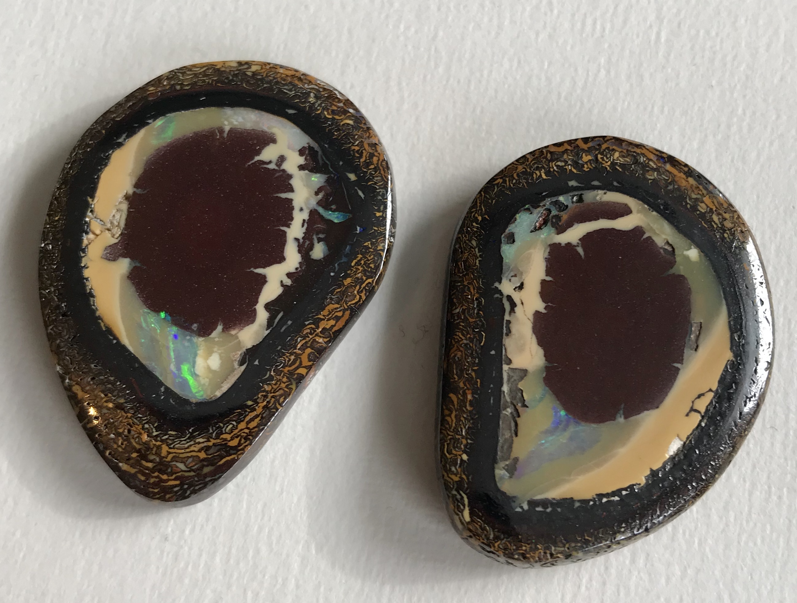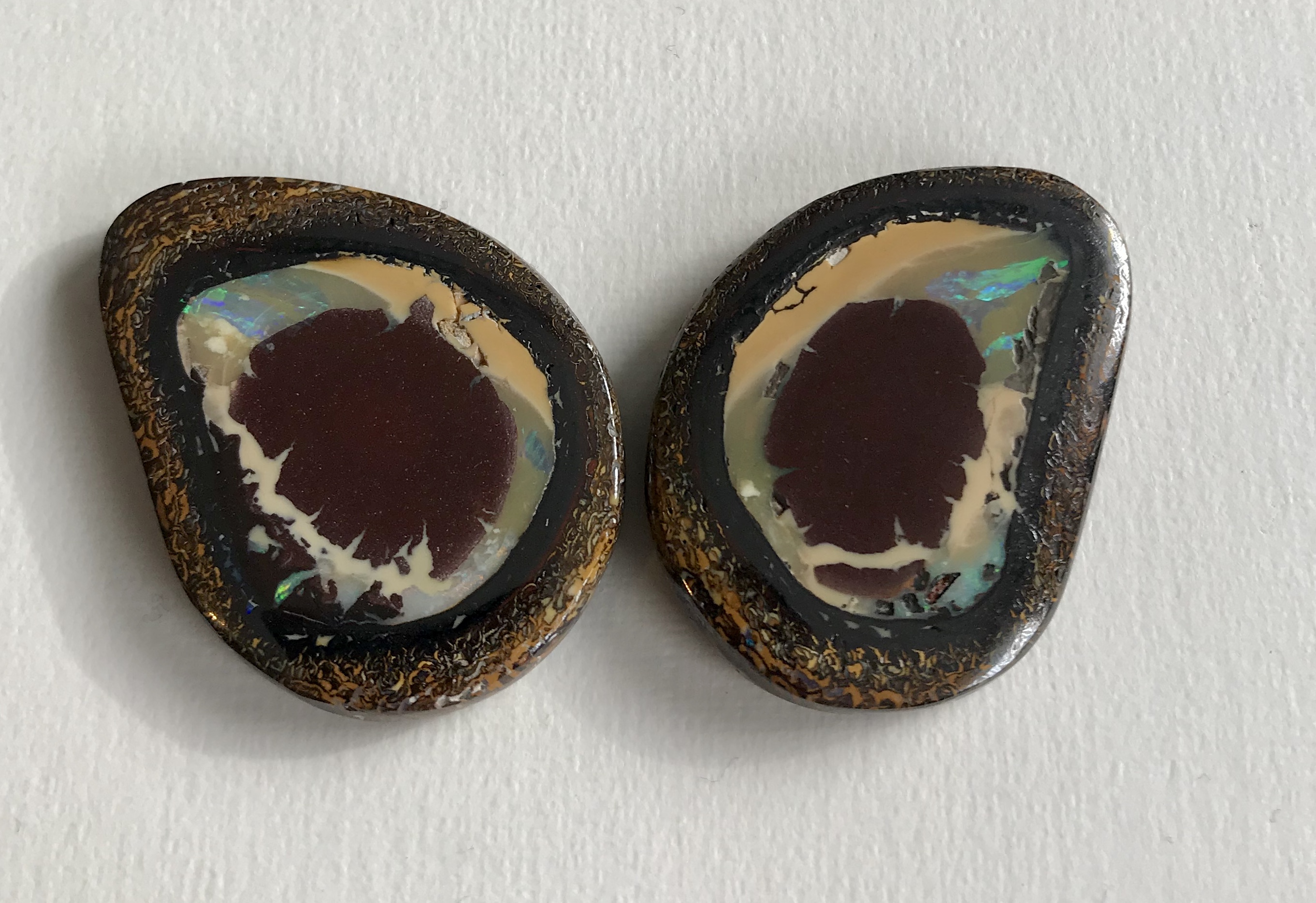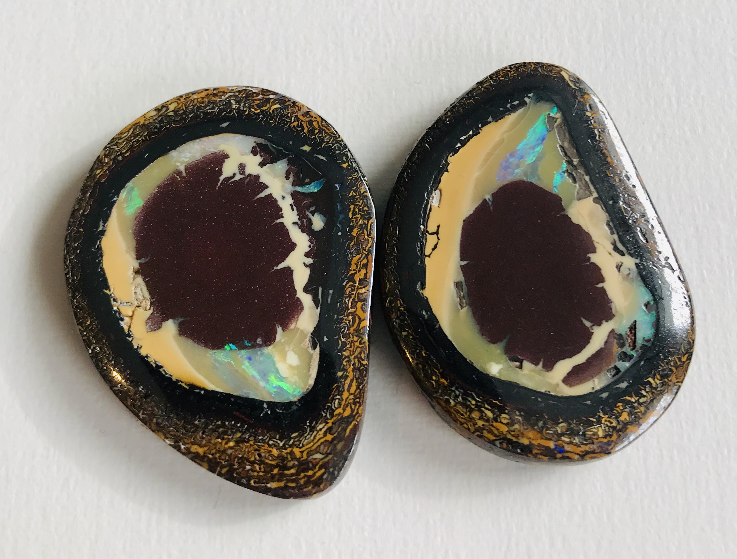 Exklusives Yowah-Opal Paar in Fantasieform geschliffen. Diese traumhaften Opale haben eine wunderschöne Maserung,